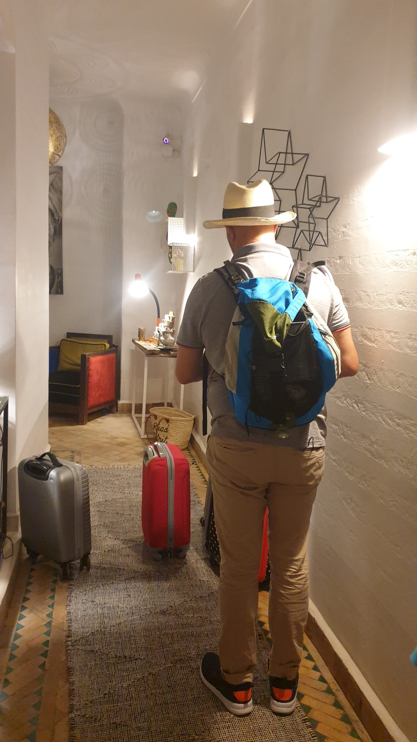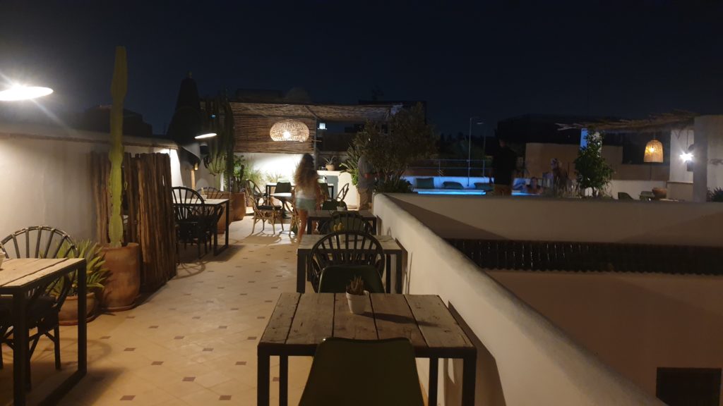 Nous sommes déposés près d’une ruelle et poursuivons quelques minutes à pied avec une personne du Riad venue nous chercher.