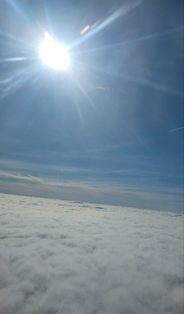 Bon, une fois le repas du soir servi après avoir décollé de Paris, et les lumières éteintes, à 22h30, on dormait tous ! Lol, aucune discipline ! Seul Éric a résisté autant qu’il a pu, il en faut bien un qui tienne le coup.