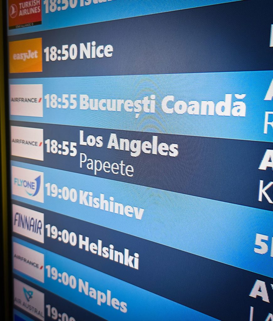 Eric et Valou ont calculé que sur nos 2 vols de 10h, c’était seulement sur le trajet Los Angeles-Papeete qu’il fallait dormir si nous voulions espérer ne pas être trop décalés à l’arrivée, soit attendre 8h du matin heure française…