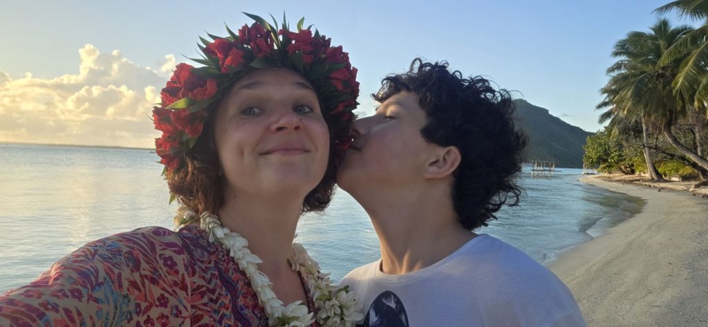 À Bora, les touristes présents sur le bateau descendent tous ici. Il ne reste que les polynésiens, un autre groupe de touristes et nous.