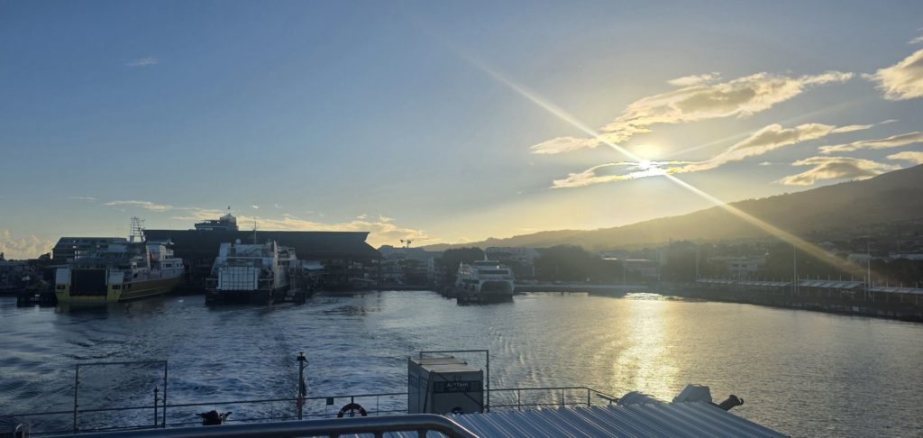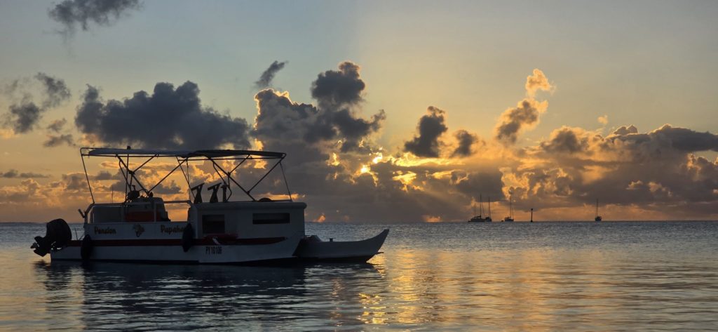 Le lever est très matinal, nous prenons le ferry en direction de l’île la plus éloignée de l’archipel de la Société : Maupiti.