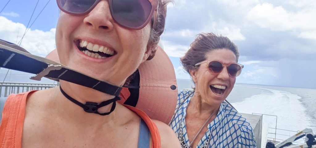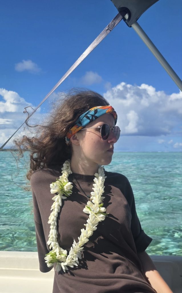 L’eau est translucide, on longe des plages de sable blanc. Dans l’eau, on croise plein de raies léopard qui filent à une vitesse folle. Nos colliers de fleurs ont un parfum incroyable, un délice.