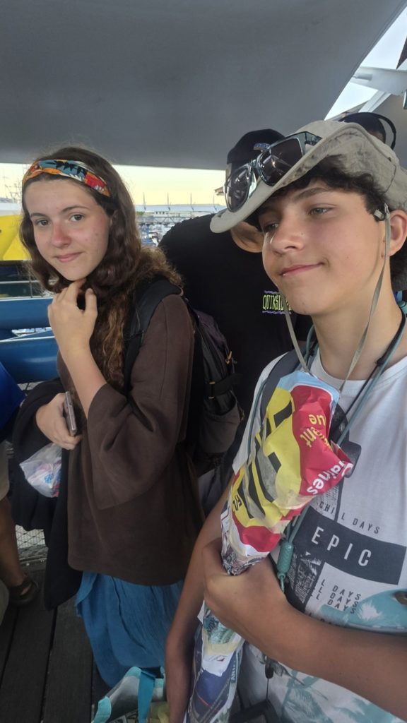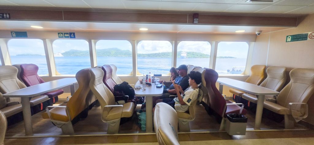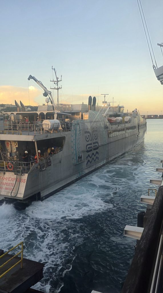 Le ferry parcourt toutes les îles. Les touristes sont en minorité ici, il n’y a quasiment que des polynésiens ! Nous avions regardé les vols pour les îles, mais à 4, le budget était trop élevé. Et l’heure d’arrivée sur l’île était la même en bateau ou en avion, alors on n’a pas hésité longtemps…