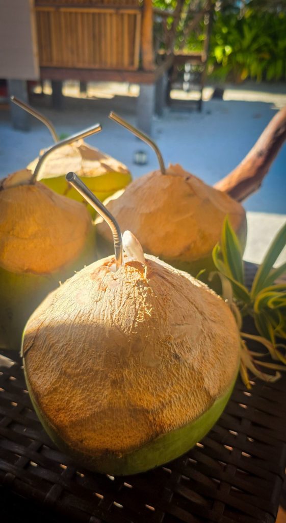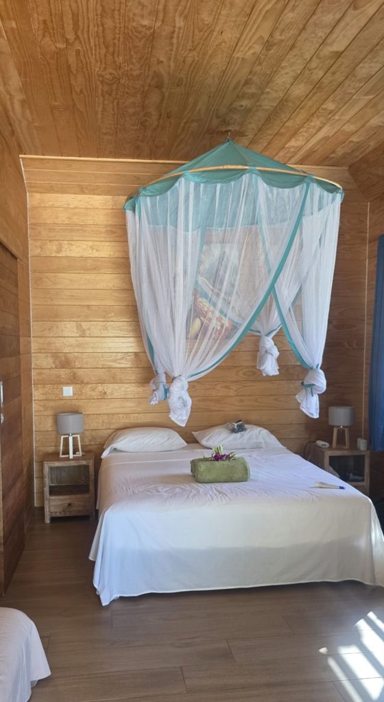 Nous sommes installés dans 2 bungalows sur pilotis, sur la plage. L’endroit est paradisiaque.