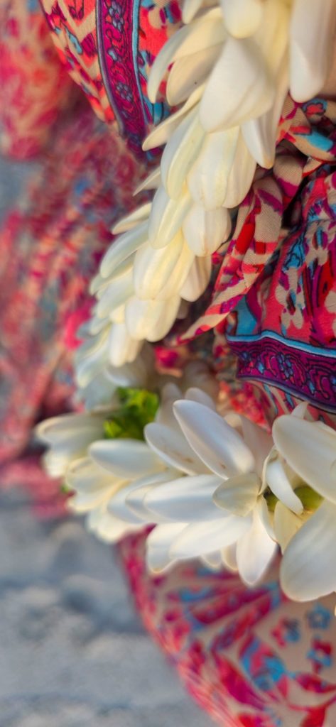 Vous êtes super beaux, Aurelie et Emma, fleurs parmi les fleurs entre tenue, couronne et collier…waouh !