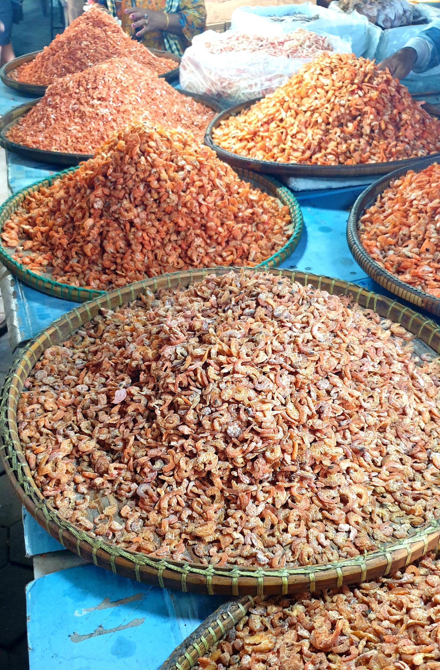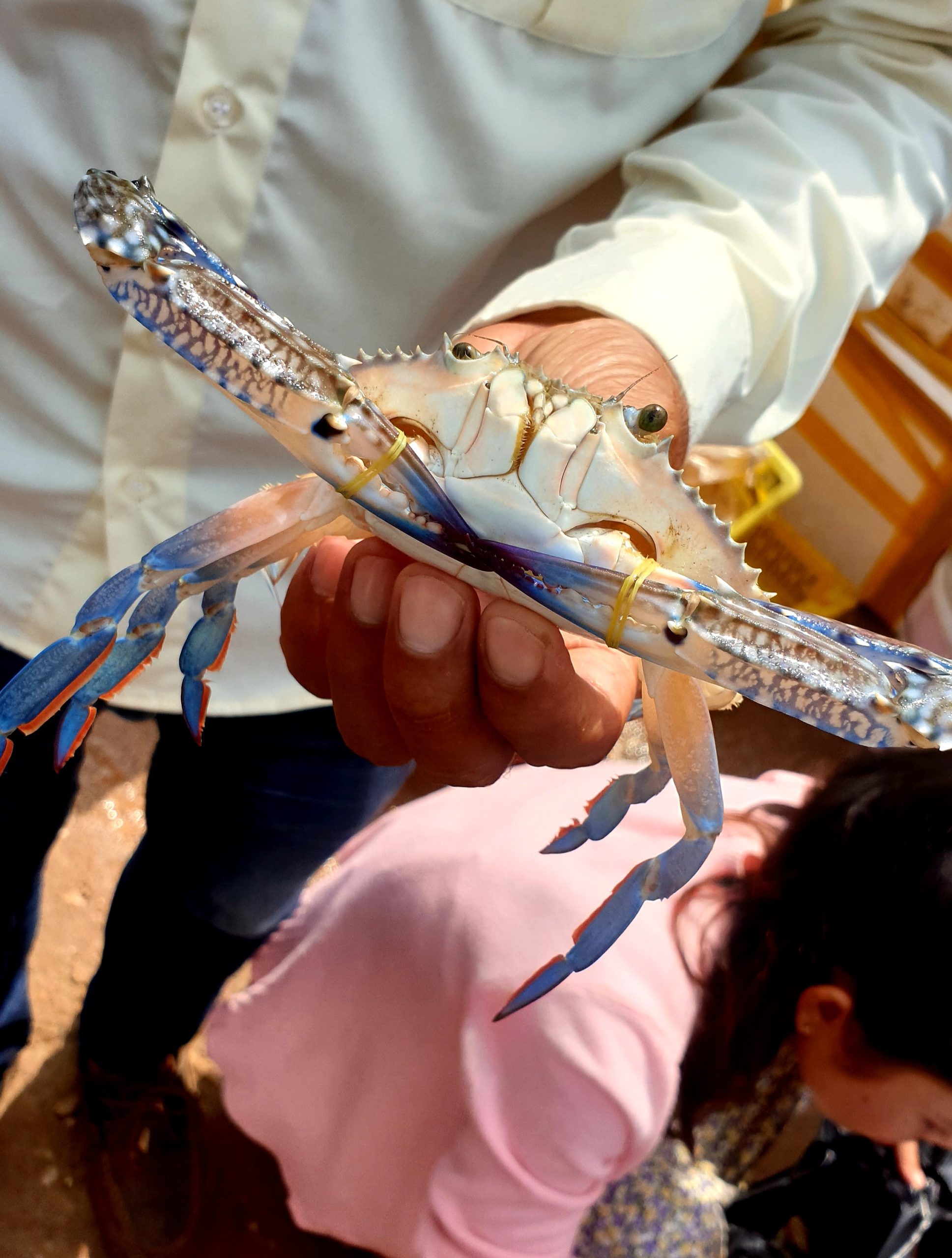 Sas’ nous fait faire un tour du marché pour nous faire, encore une fois, goûter à tout. C’est génial d’avoir quelqu’un qui nous présente chaque produit et nous explique de quoi il s’agit. Il nous montre comment choisir le crabe, comment il est conservé, etc…