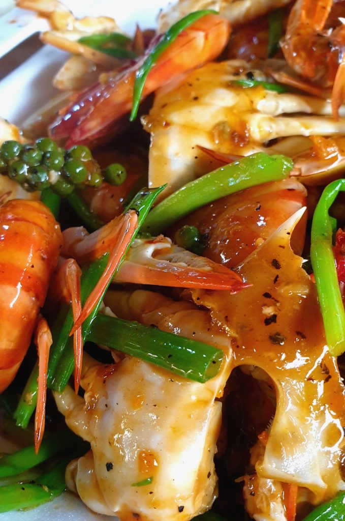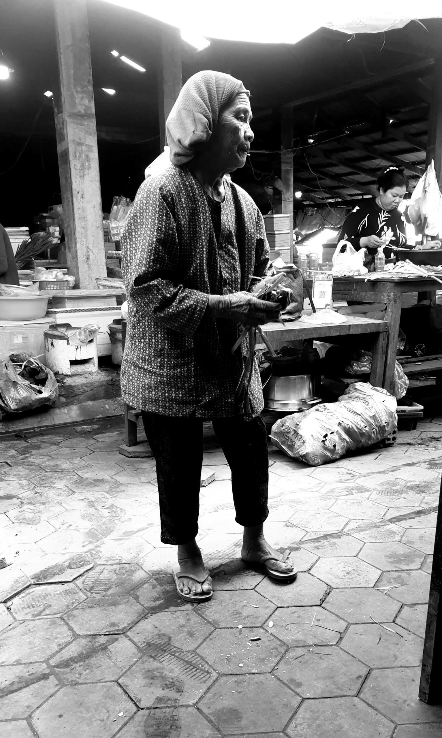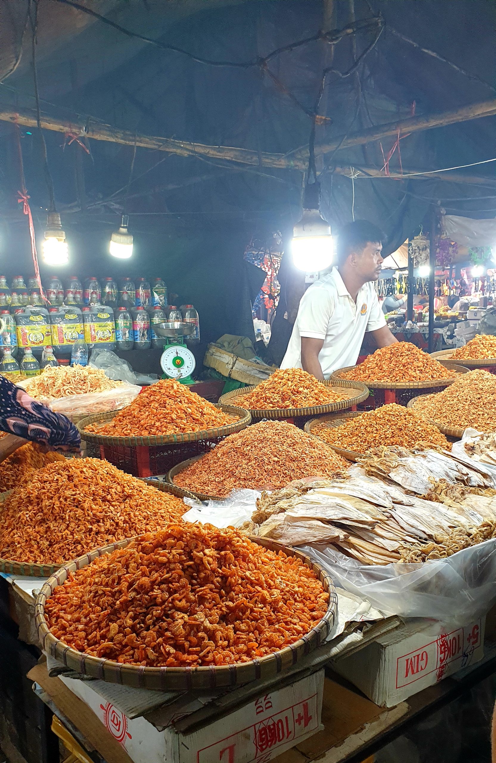 Il est l’heure de manger, nous retournons au marché car nous voulons absolument goûter ce fameux crabe au poivre vert de Kampot !