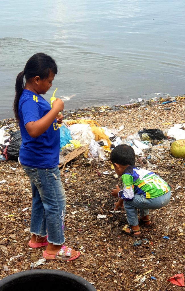 Le marché au crabe est situé au bord de la mer, près d’une jetée. Alors quand on ne connaît pas l’Asie, on peut être choqué par la pollution…ici, le plastique est partout : dans les fossés, sur la plage, sur les routes, au bord des maisons, sur les trottoirs, c’est une déchetterie à ciel ouvert et c’est un vrai problème ! Sas’ nous en parle et nous explique qu’avant, tout était emballé dans des feuilles de bananier. On pouvait les jeter au sol une fois utilisées, ça ne gênait pas. Aujourd’hui, les gens font la même chose avec le plastique ! C’est une éducation qui commence à peine ici et qui n’est pas encore intégrée.