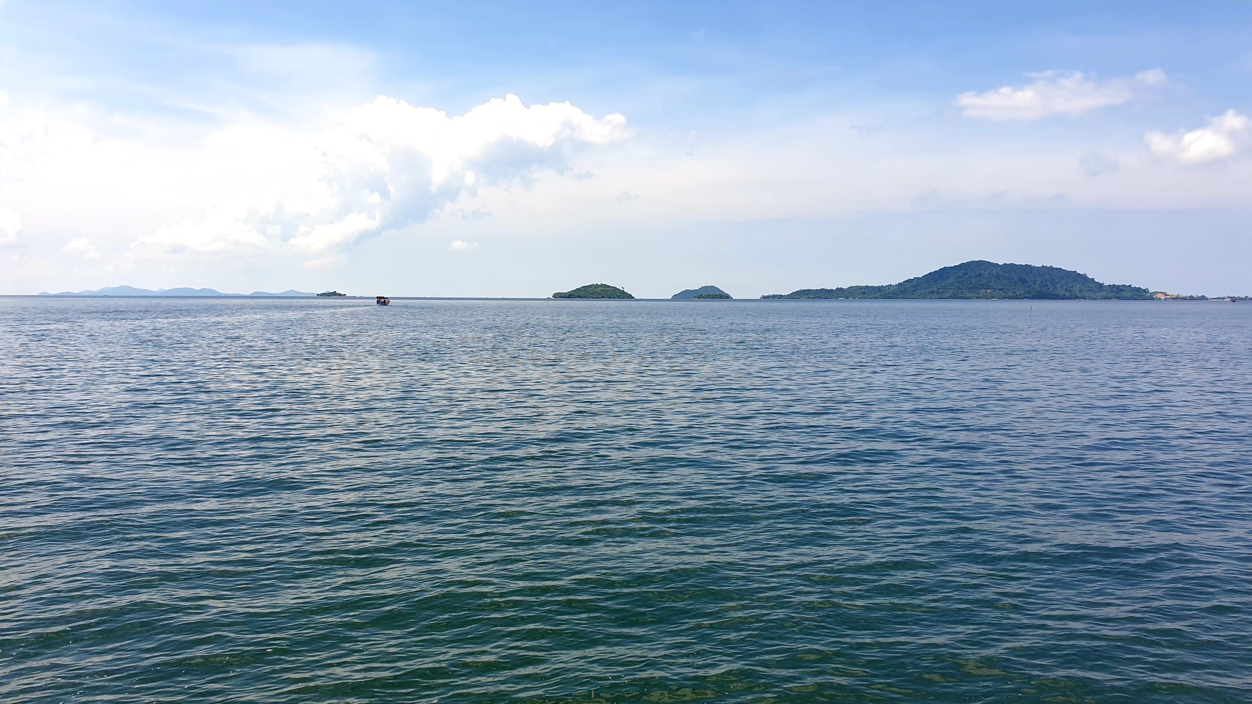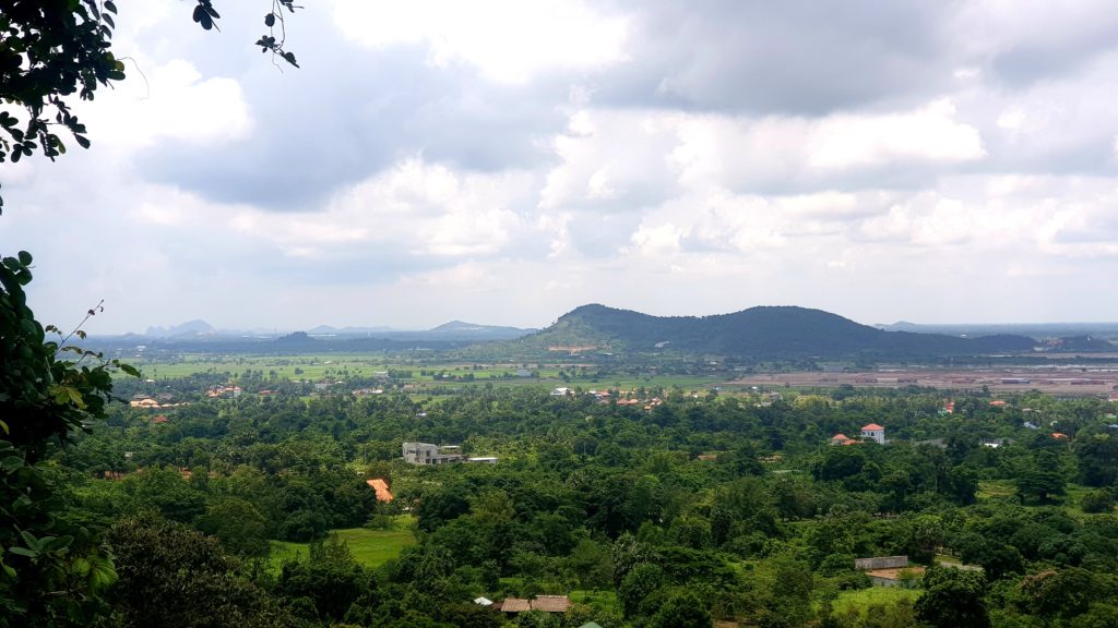 Nous visitons une pagode, perchée sur une colline, d’où nous avons une vue magnifique sur le sud, sur les îles environnantes et même sur le Vietnam tout proche.