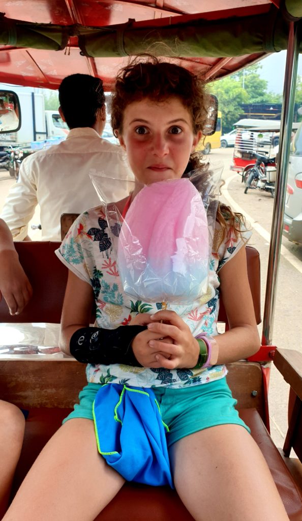 De manière générale, nous trouvons que les cambodgiens roulent très prudemment. Il n’y a presque pas de passages piétons et il faut traverser les routes en se frayant un chemin au milieu des motos, des voitures et des Tuk-Tuk. Au début, nous étions un peu stressés quand il fallait traverser une rue, et puis en fait, les véhicules roulent tellement lentement qu’il n’y a pas trop de difficulté.