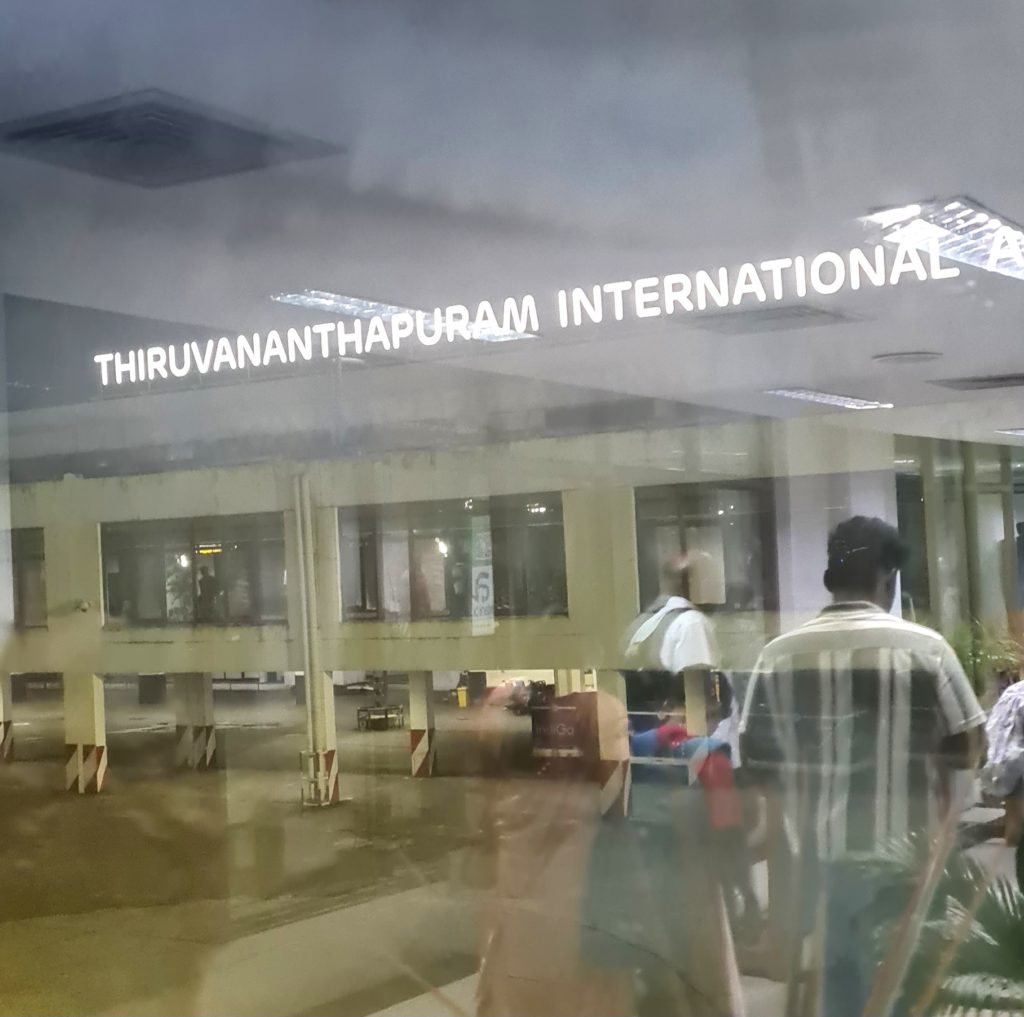 Nous prenons 2 avions aujourd’hui et atterrissons à Thiruvananthapuram (Trivandrum) vers 20h00 ce soir après une escale à Bombay. En train, nous en avions pour plusieurs jours !!…