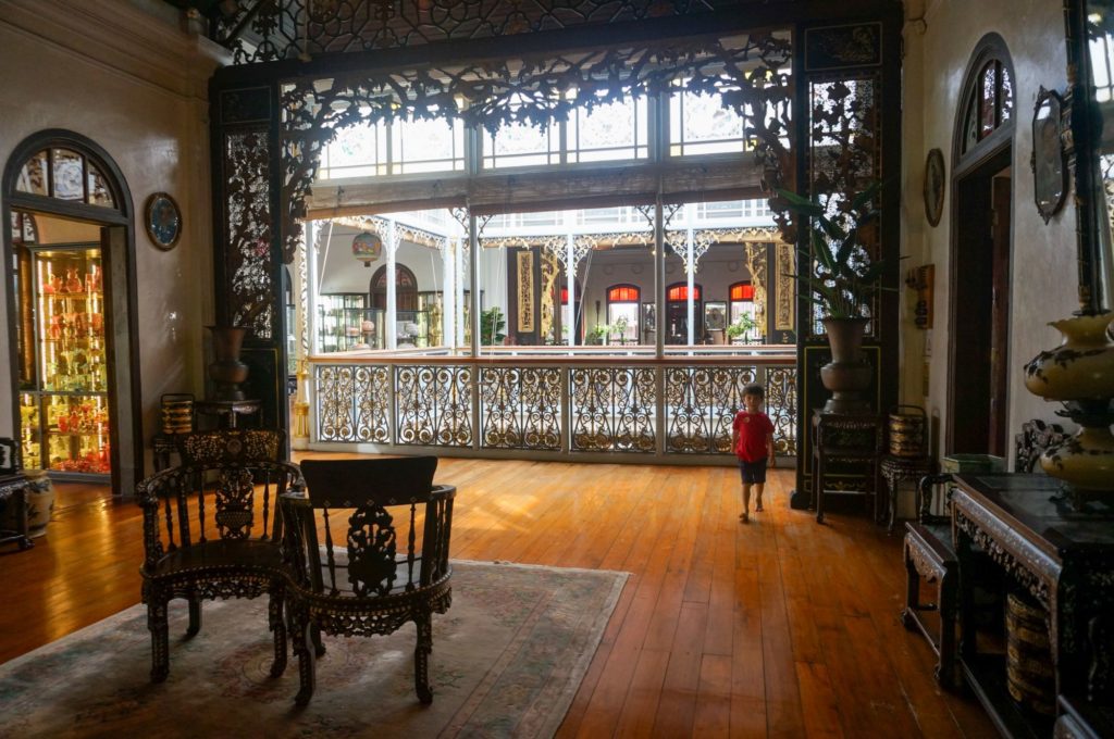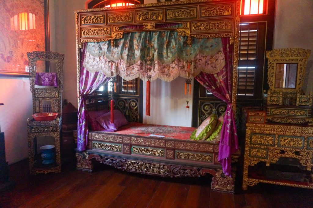 Il s’agit d’une des plus belles demeures de Penang, qui appartenait à un chinois peu recommandable (il a fait fortune dans l’opium et le commerce de « main d’oeuvre » pas chère…)