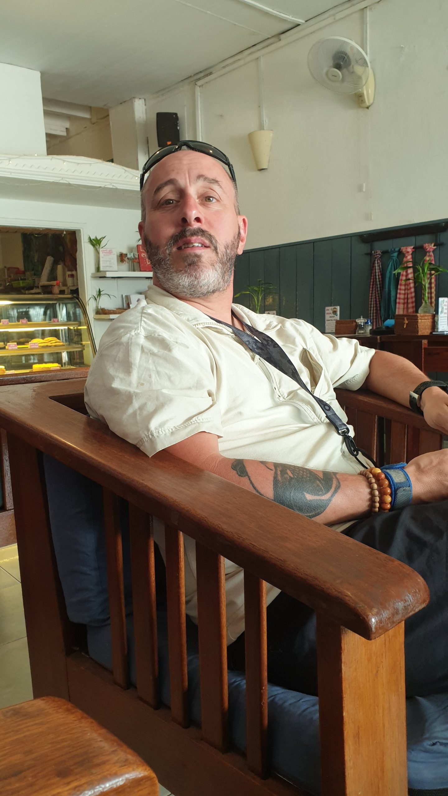 Eric part se faire masser juste à côté de notre hôtel. Il ressort en me disant de ne pas y aller, je souffrirai trop : massage tonique avec les coudes et les genoux !