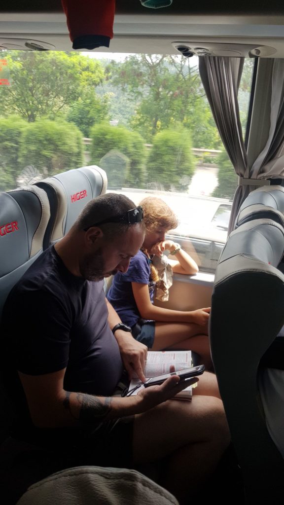 Le hasard fait que nous partons tous aujourd’hui pour Yuanyang, là où se trouvent les plus belles rizières au monde (dixit l’UNESCO). L’autre famille part en taxi dépêché par leur guesthouse, nous en bus.