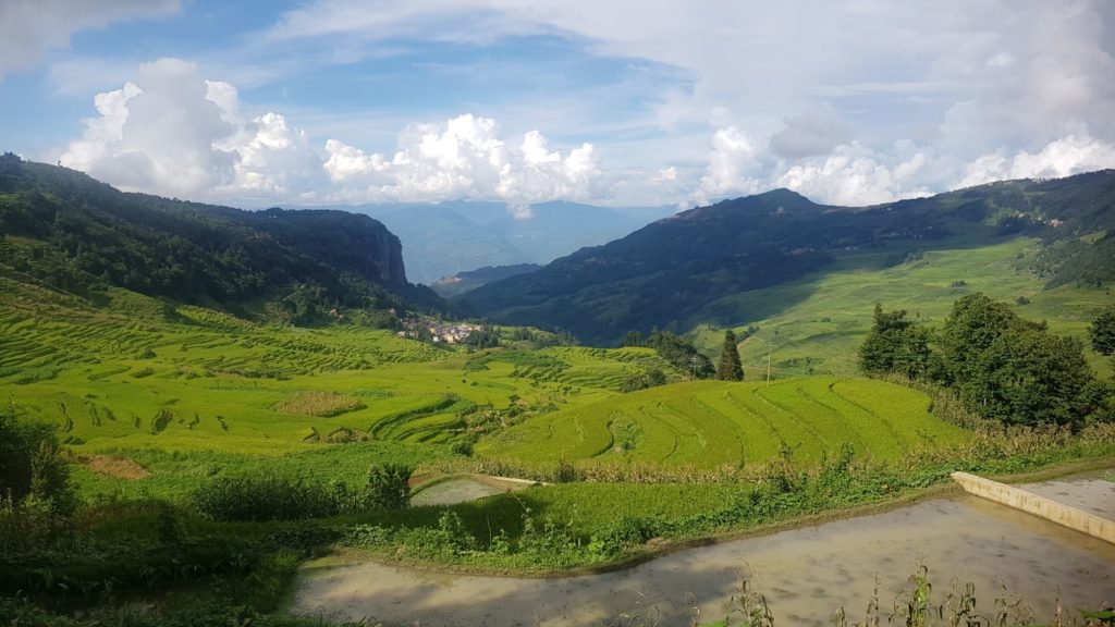 Nous avons 4 heures de route jusqu’à la ville de Xiejie où nous devrons prendre un minivan jusqu’au village où se trouve notre guesthouse. Pendant le trajet, nous entrons dans les montagnes et traversons des paysages superbes !