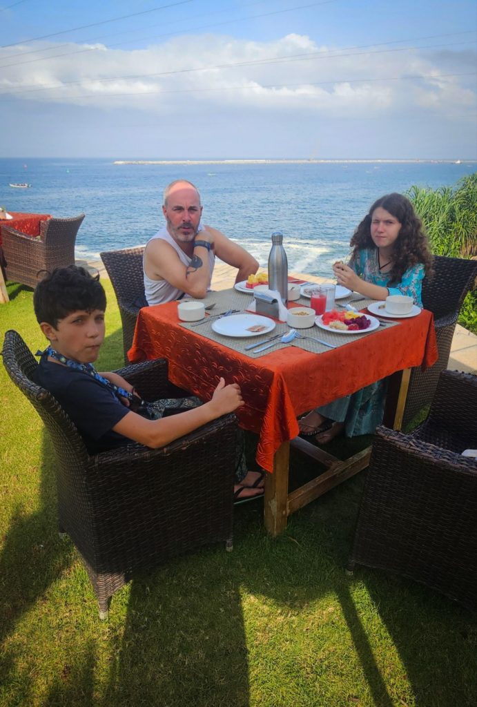 Il y a une jeune fille, (caucasienne ?), de l’âge d’Emma. Du coup, notre fille a accouru pour jouer avec elle. Elles ont « discuté » grâce à Google. Emma a ainsi appris qu’ils venaient tous passer 1 mois ici tous les ans depuis 8 ans !