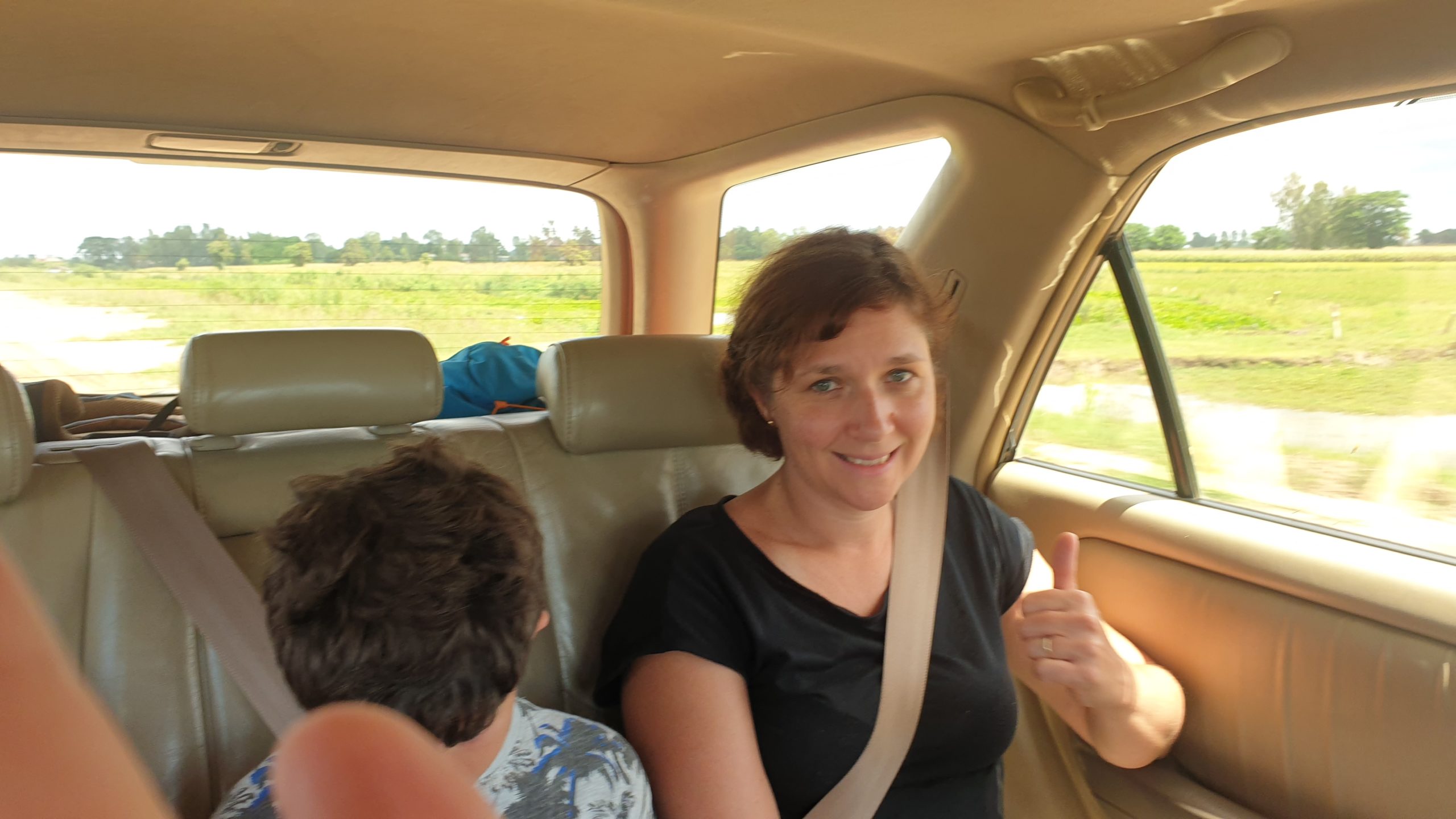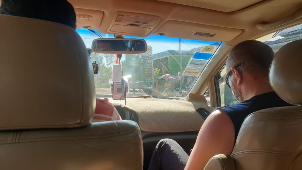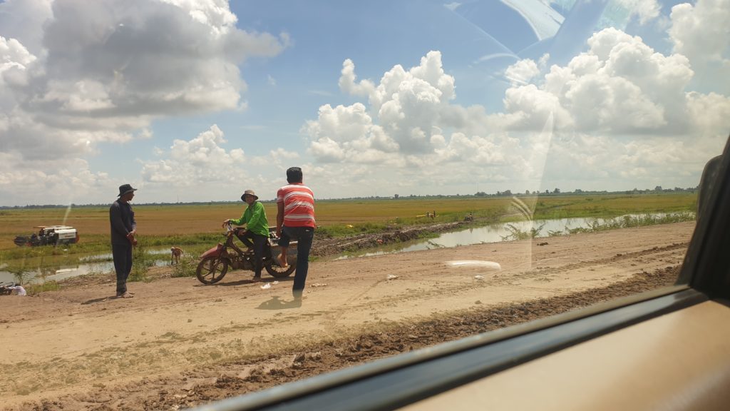Notre taxi est là à 7h ce matin pour nous conduire au poste de frontière. Il y a un peu moins de 4 heures de route. Nous suivons d’abord la route principale qui remonte vers Phnom Penh.