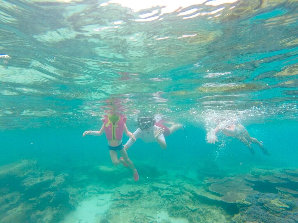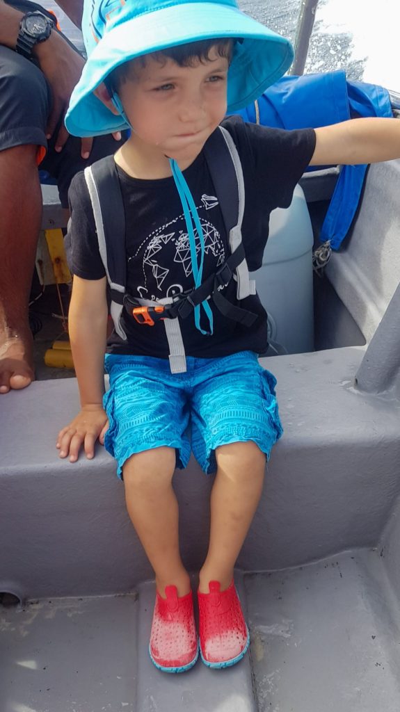 Un peu plus loin, il nous arrête près d’un récif où les fonds sont aussi clairs qu’une piscine et où les poissons sont là par centaines. On se croirait dans un aquarium géant !!!
