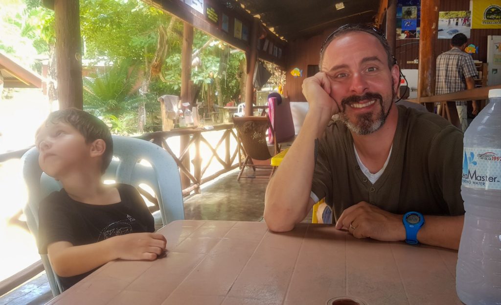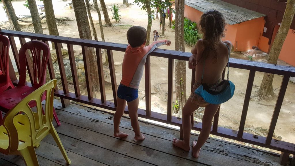 Le lieu est tellement isolé, qu’ici, on n’y vit comme dans un petit village. Il y a le restaurant, qui fait bar et accueil et où tout le monde se retrouve. Tous les adultes sont à la sieste dans les hamacs, et les loulous ont déjà fait connaissance avec les autres enfants et sont partis jouer.