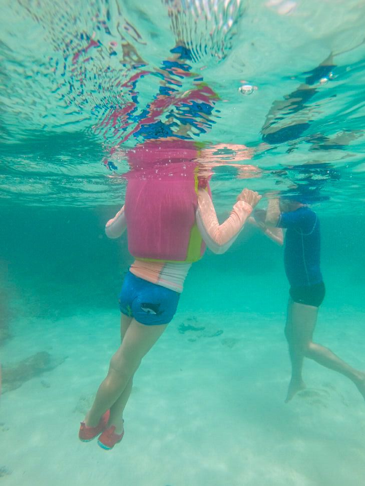 Emma est totalement autonome, Sacha nous suit avec sa bouée.
