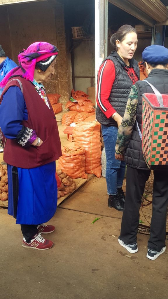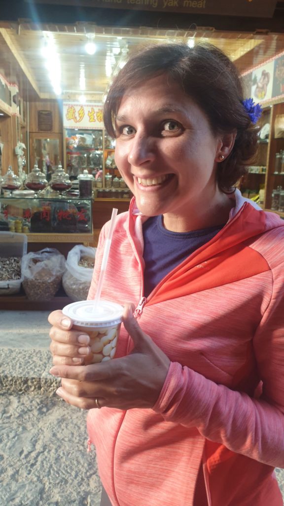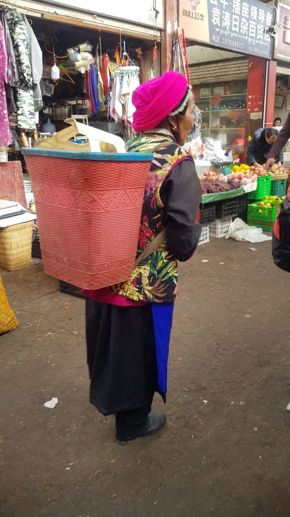 On regarde les gens marchander, les tibétaines avec leur coiffe rose déambuler un peu partout…c’est un monde extraordinaire.
