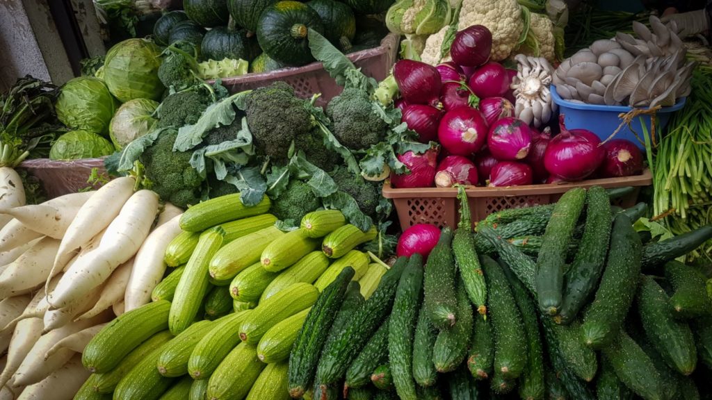 Il y a un nombre impressionnant de légumes verts, bien plus que chez nous !