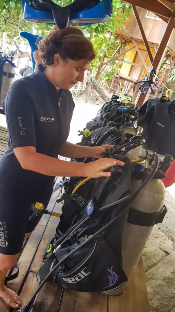 Nous avons la chance d’avoir un centre PADI sur notre plage, donc c’est top !!