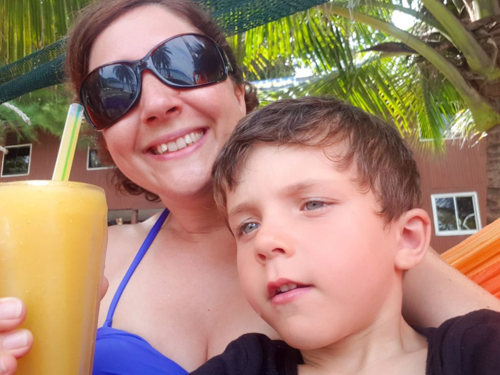 Pendant ce temps, les enfants ont joué dans l’eau et Eric s’est fait des copains. En même temps, ici, nous avons retrouvé plein de français croisés précédemment, donc l’ambiance est très amicale… Tous les enfants jouent ensemble, pendant que les grands sirotent des bières (achetées clandestinement au club de plongée;-) )