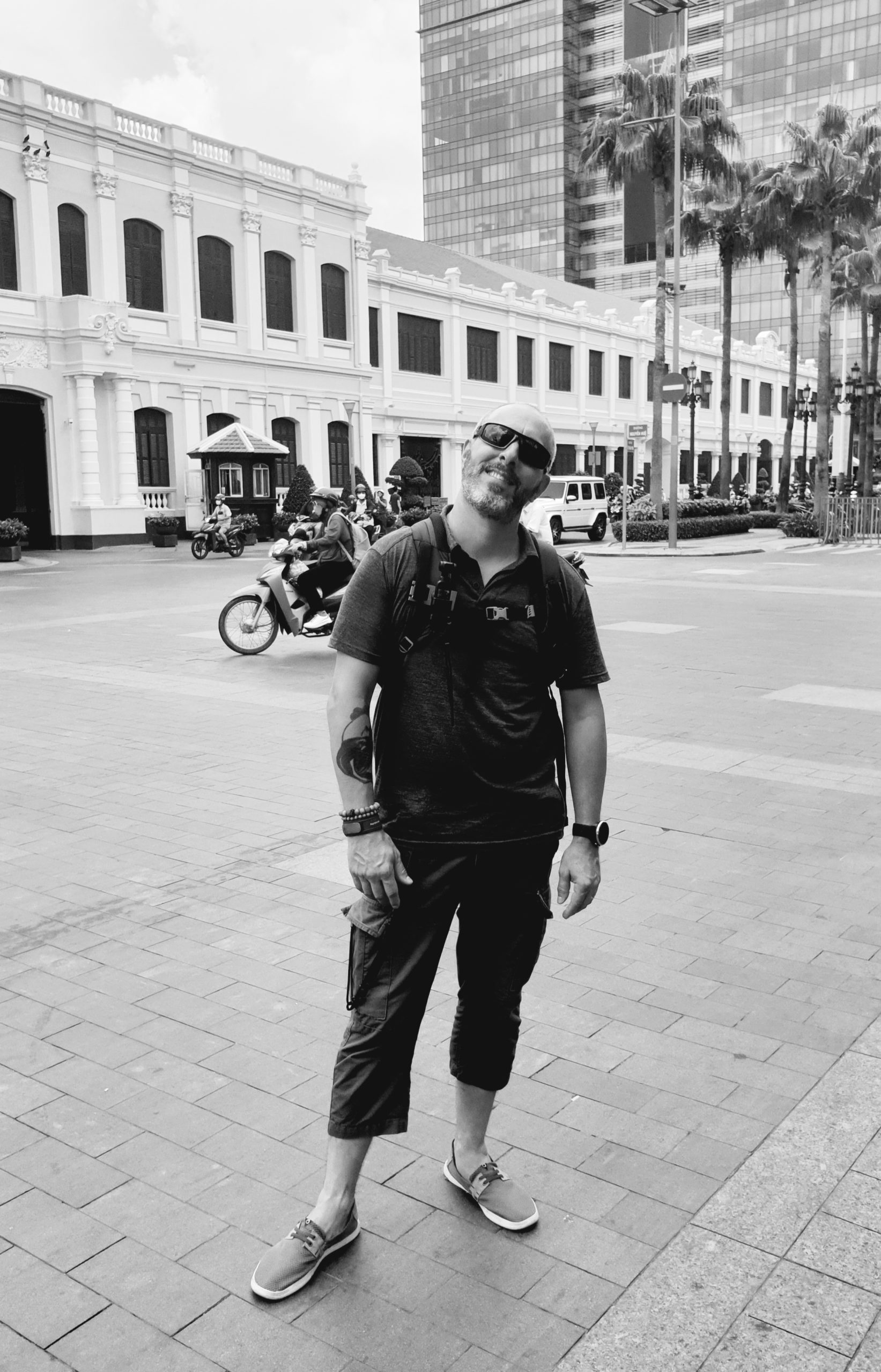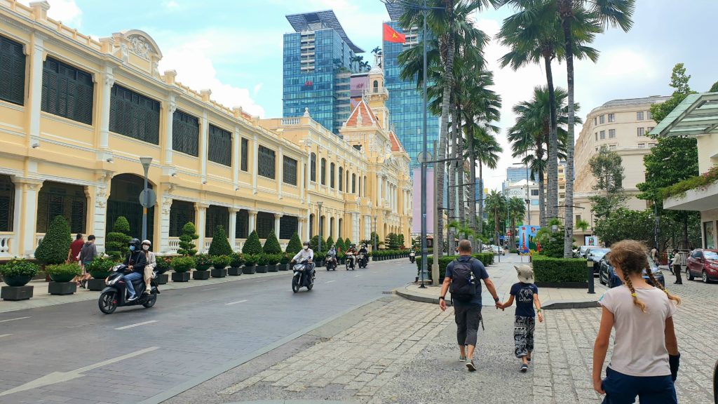 Ho Chi Minh-ville, ex-Saigon, est une ville très particulière, ça grouille, c’est effervescent, on croise des centaines de motos partout et c’est un mélange entre une architecture française XIXeme, une autre asiatique et des buildings ultra modernes ! J’aime beaucoup !