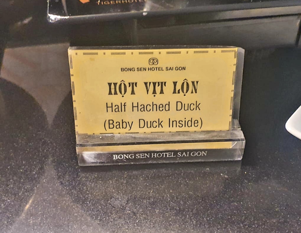 Nous débouchons sur le fleuve Saigon où nous faisons une petite pause en sirotant une boisson bien fraîche et remontons une autre avenue. Nous tentons à midi un buffet à volonté 100% vietnamien. Certaines spécialités sont surprenantes !!