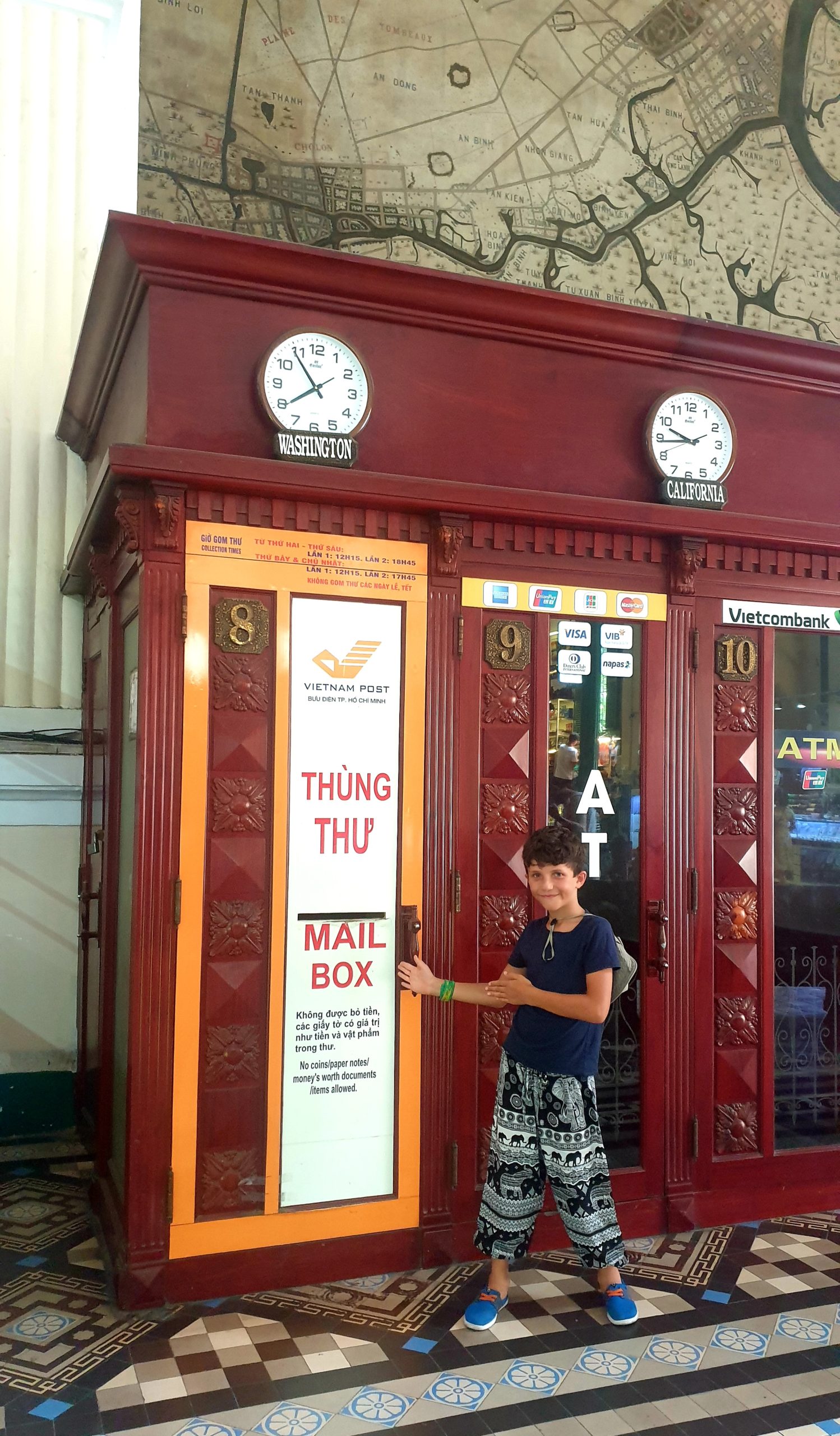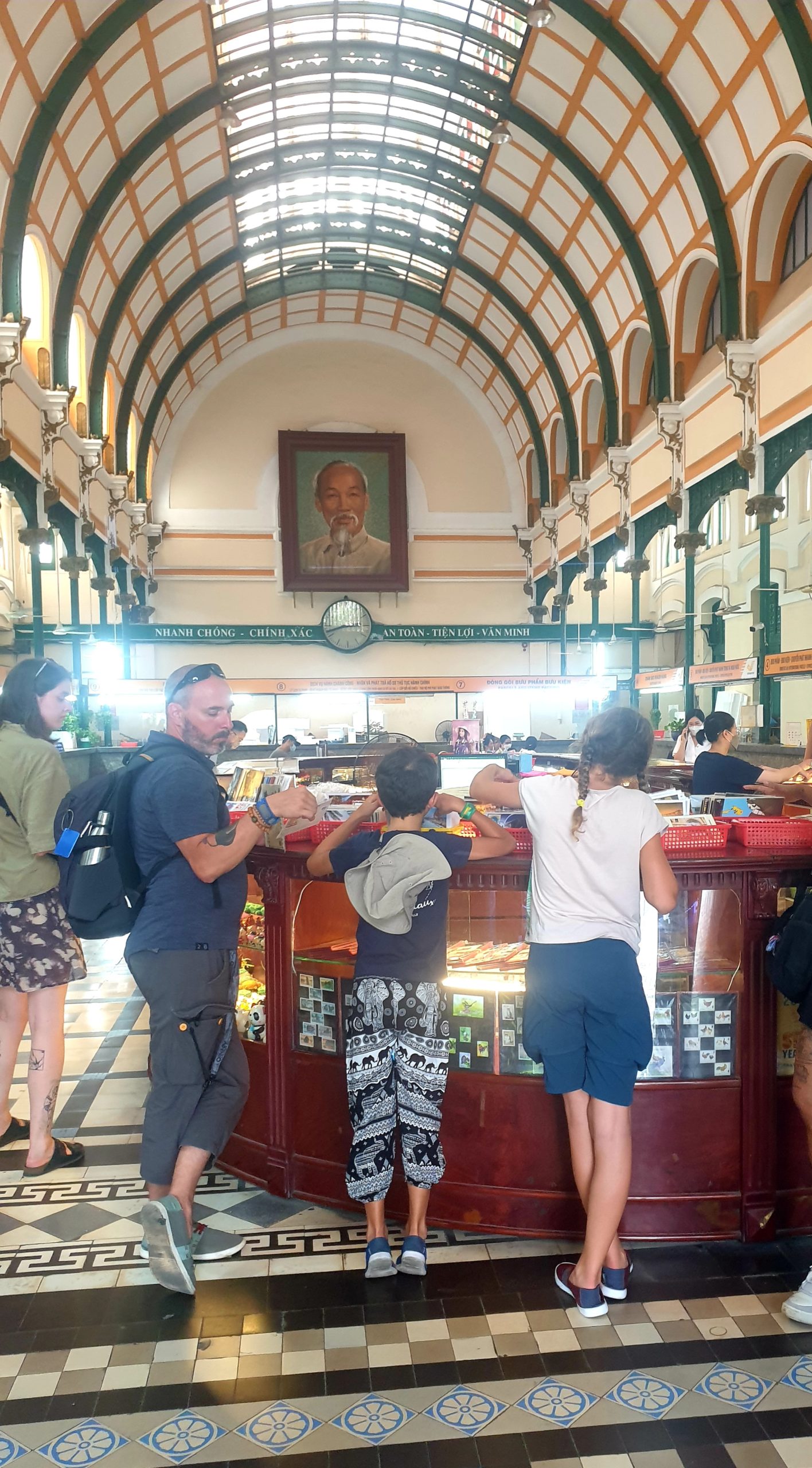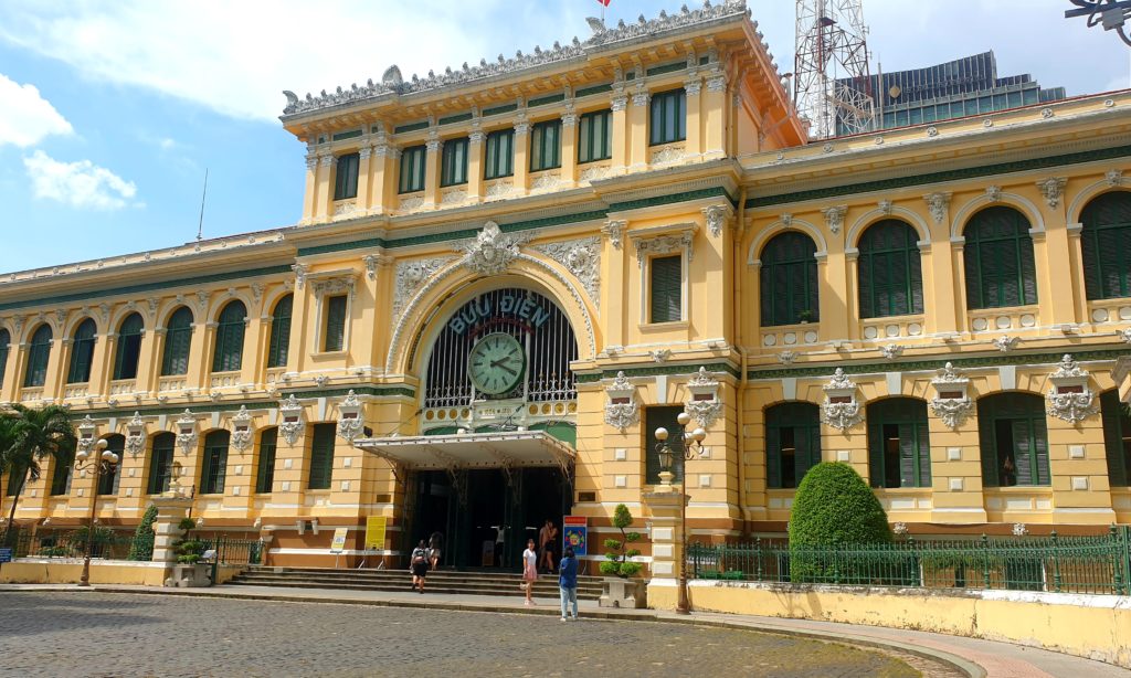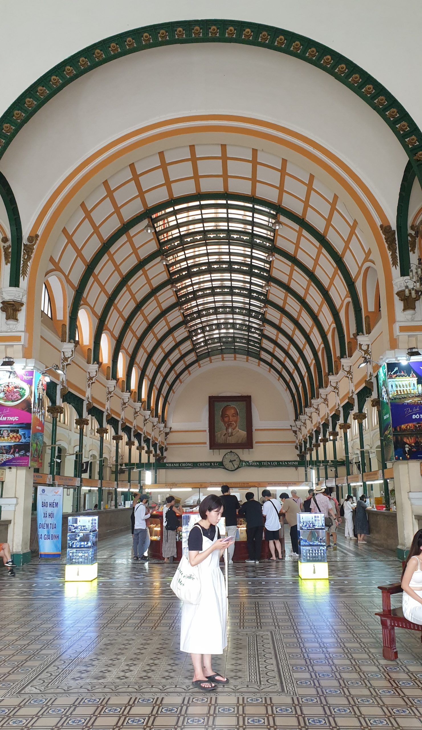 Nous passons devant le théâtre municipal, et découvrons la cathédrale Notre-Dame, complètement en restauration et donc fermée. Juste à côté, on trouve la poste centrale, l’un des fleurons de l’architecture coloniale française à Saigon.