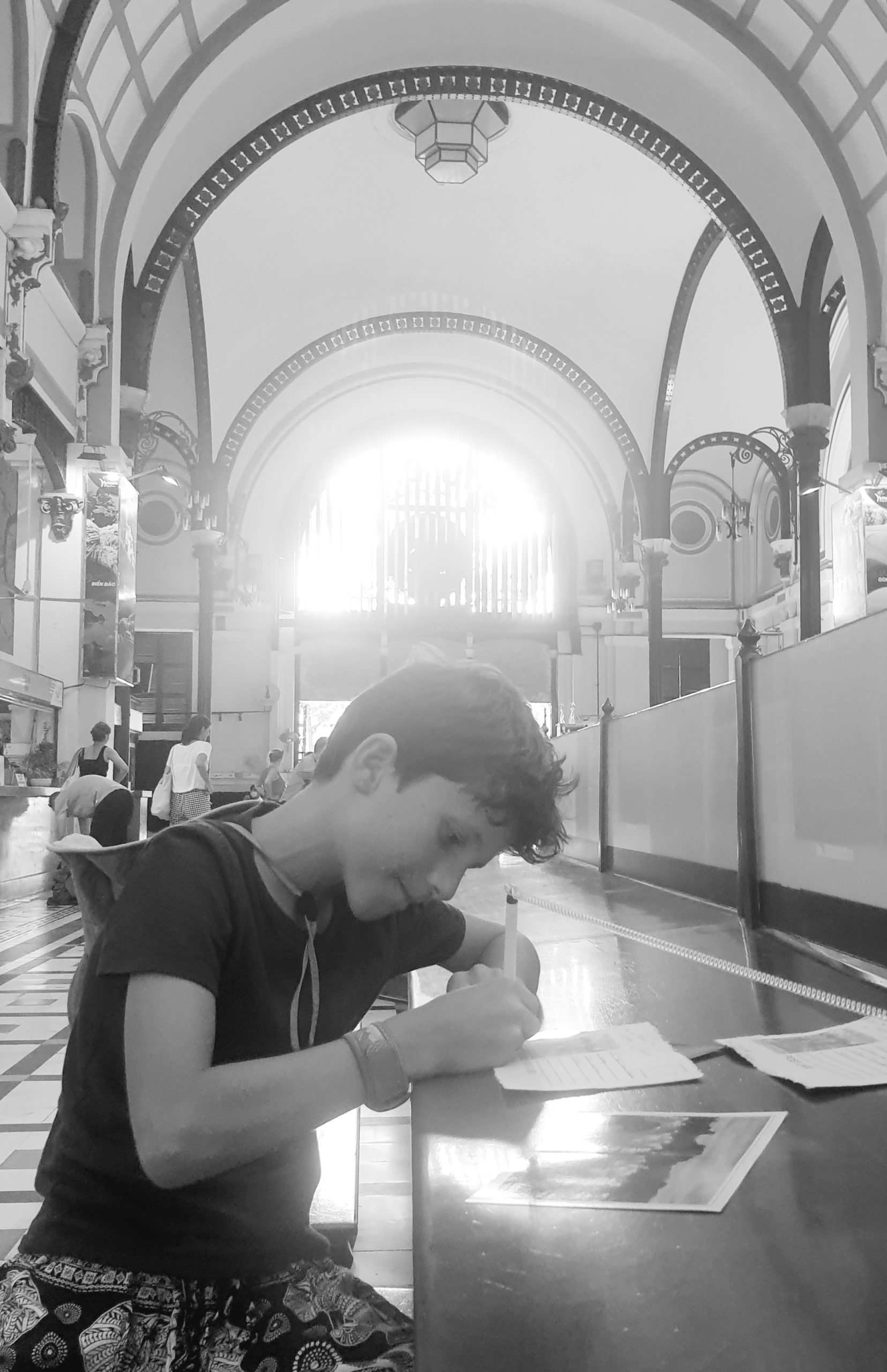 Nous profitons d’être ici pour écrire et envoyer quelques cartes !