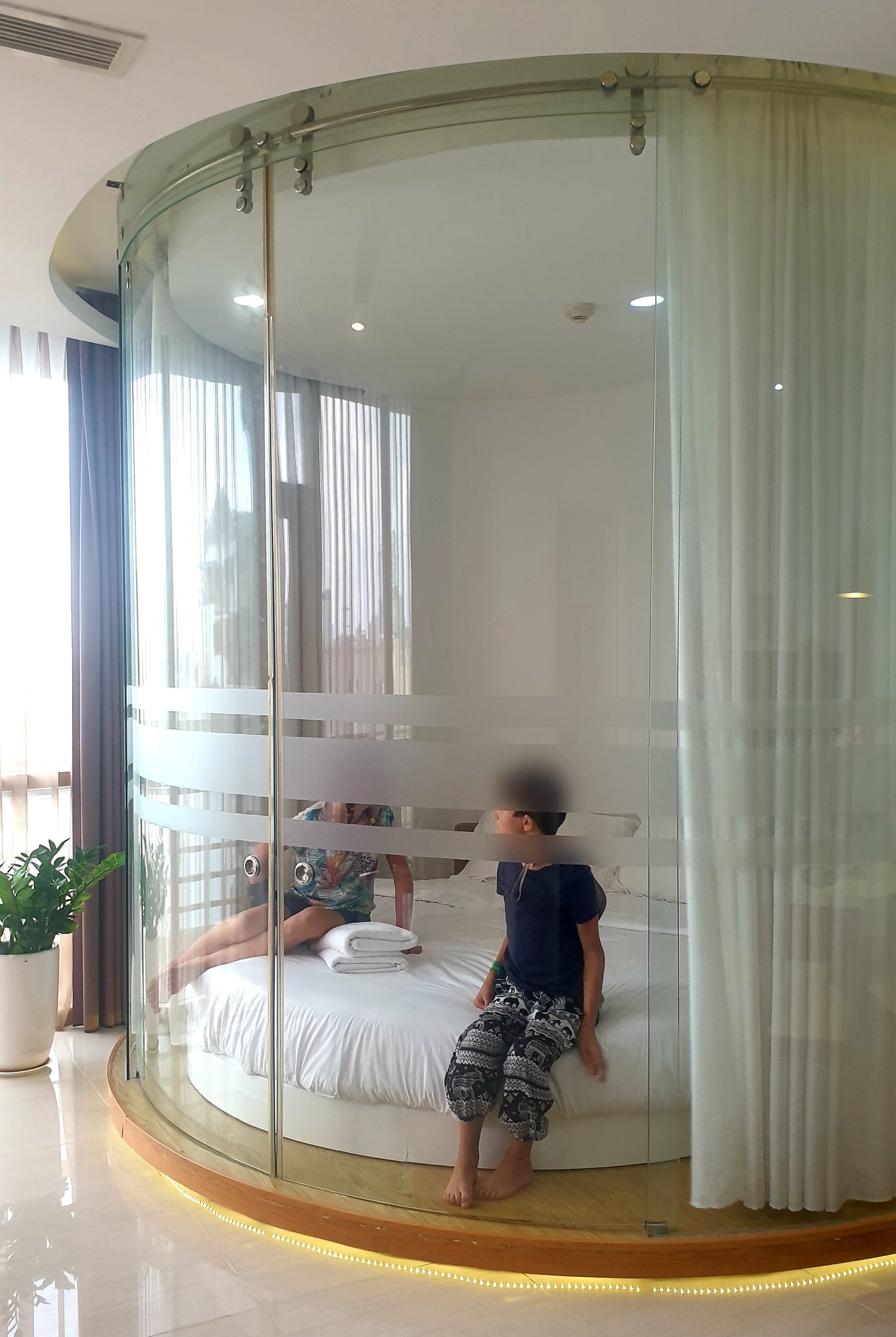 En le découvrant, nous sommes ravis !! La vue est superbe, notre lit (rond) est top, les enfants ont leur chambre et il y a même 2 salles de bain et une machine à laver ! Quel luxe !