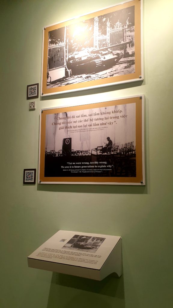 Le musée des vestiges de la guerre était anciennement nommé « le musée des Crimes de guerre américains ». Quand les 1ers touristes américains sont arrivés ici après la levée de l’embargo, ils n’ont pas trop apprécié (tu m’étonnes…) alors le nom a été changé.