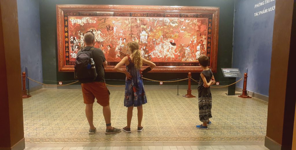 Nous passons un moment à admirer les laques gravées qui interpellent les enfants.
