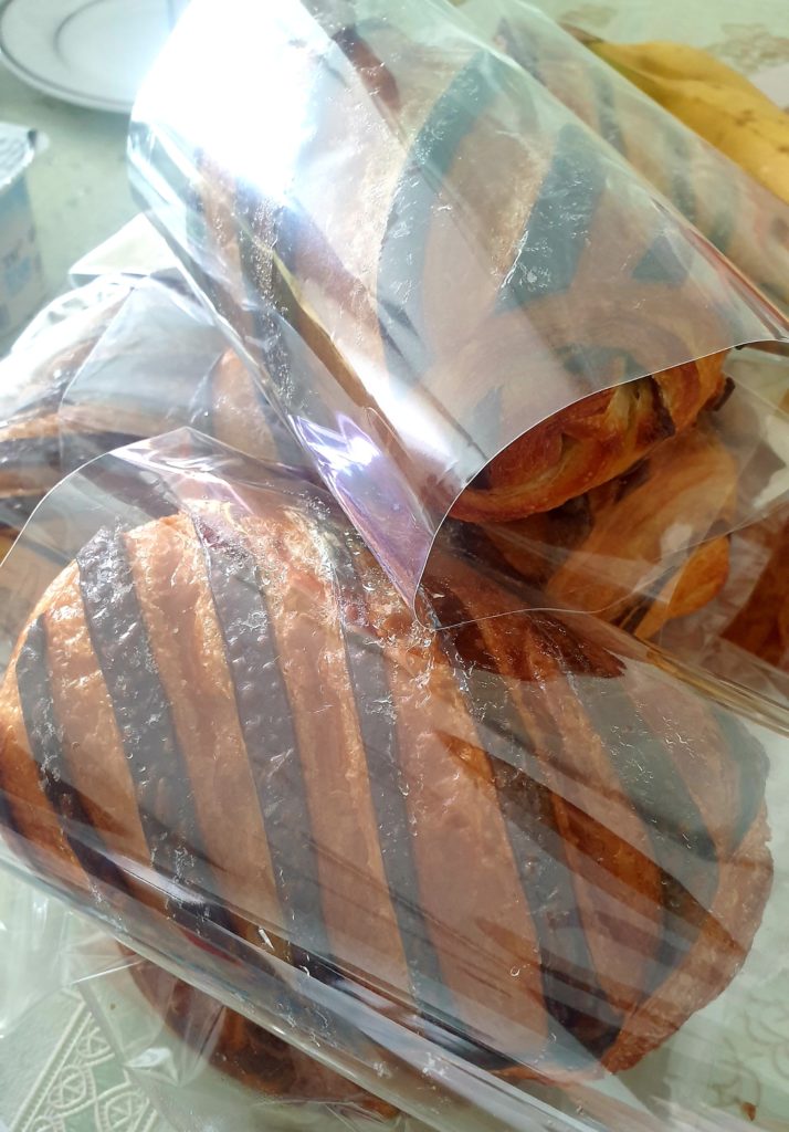 En bas de notre apart’, nous avons la chance d’avoir une boulangerie française ! Du coup, Eric est allé nous chercher des chocolatines pour le petit-déjeuner (le pain n’était pas prêt…) Bon, elles aussi sont emballées individuellement dans du plastique, mais c’est top ! Miam