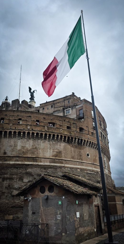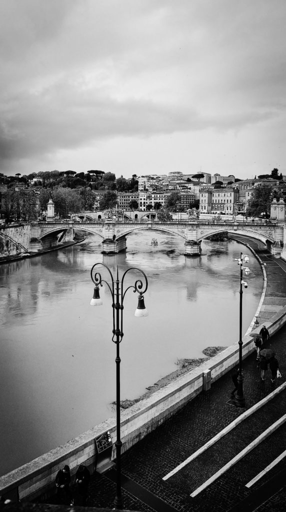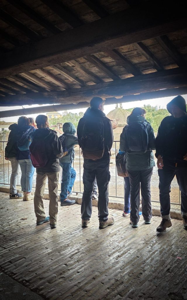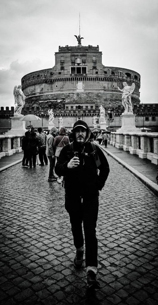 Nous traversons le pont Saint-Ange (Sant’Angelo) et là, d’énormes trombes d’eau s’abattent sur nous, c’est le déluge ! Heureusement, nous avions prévu et sommes habillés en conséquence !