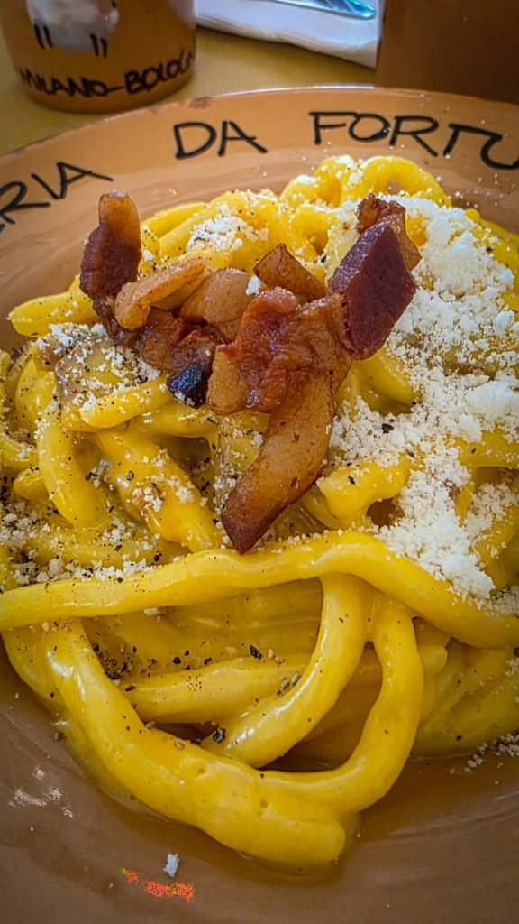 Ce sont de vraies averses, qui passent aussi vite qu’elles sont arrivées, nous pouvons apprécier la visite de Pierre qui nous fait découvrir le quartier dans lequel il a travaillé pendant 18 mois quand il était jeune (hier donc, vu que nous avons le même âge…😅). Il parle couramment italien et connaît bien la ville, c’est top !