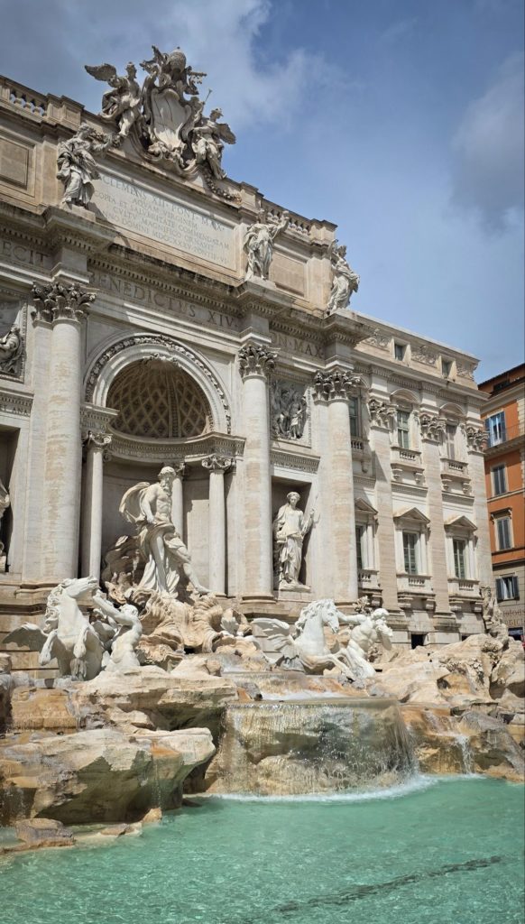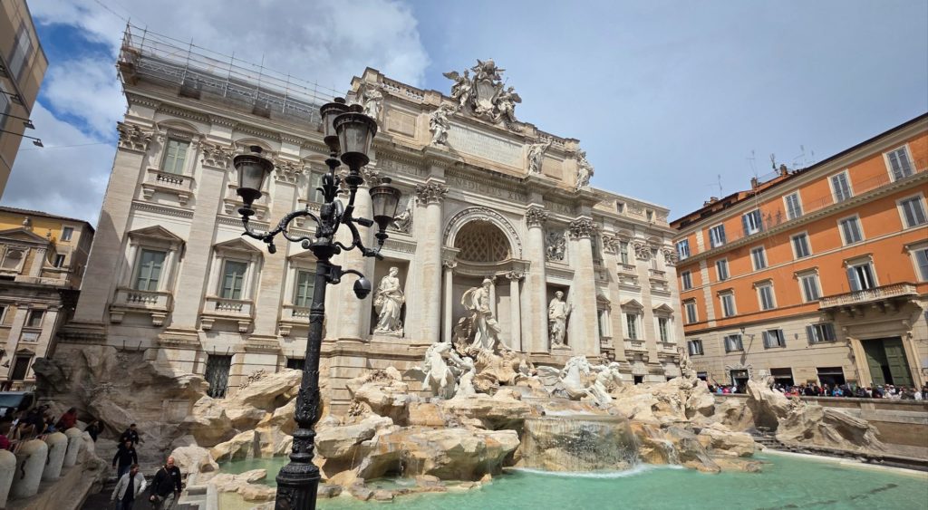 Nous déjeunons dans un restaurant spécialisé en pâtes fraîches (un régal), allons jusqu’à la piazza Navona admirer la fontaine du Bernin, passons devant le Panthéon, et puisque la foule tant redoutée ne semble pas être là, nous sommes des fous, nous décidons de pousser jusqu’à la fontaine de Trevi !