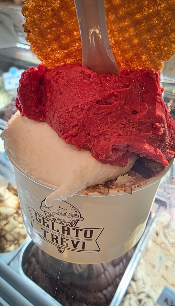Nous nous arrêtons ensuite manger une bonne glace (bah oui, on est en Italie, on va tester toute la semaine les spécialités 😅). Ce ne sont pas des boules qui nous sont servies mais des louches !