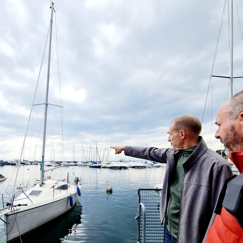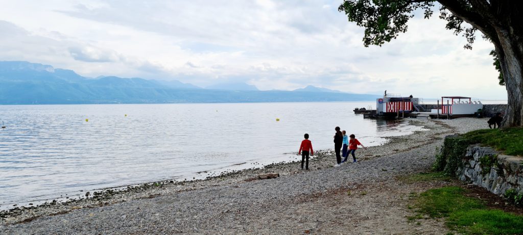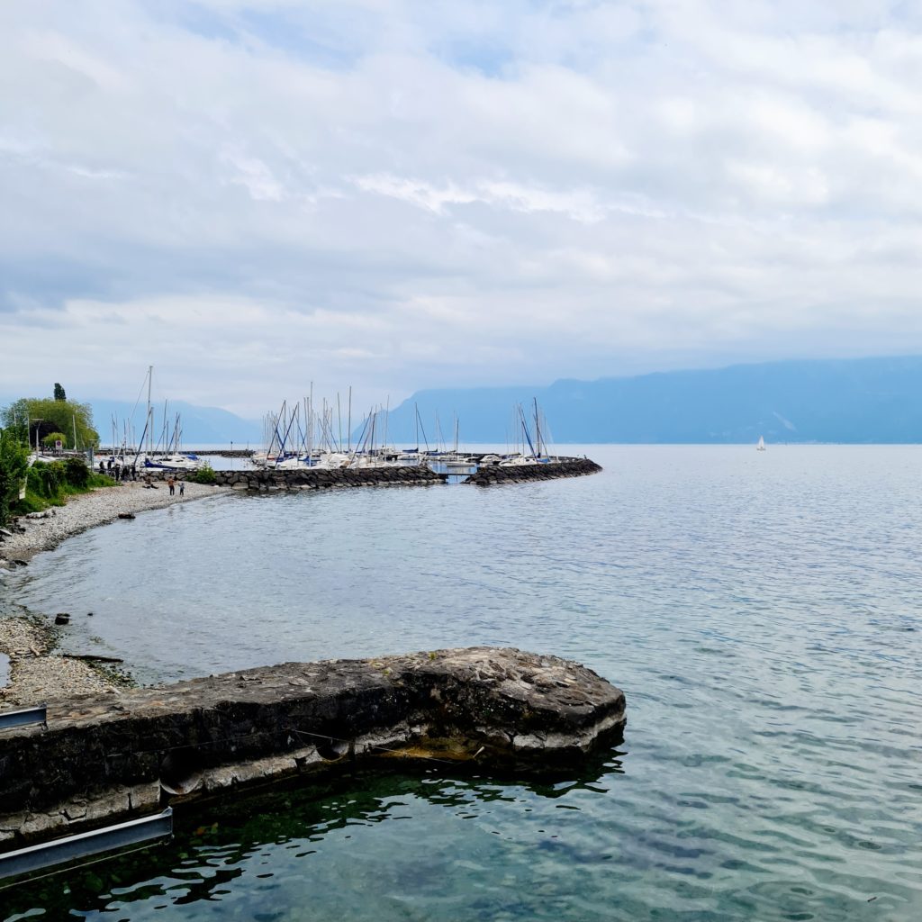 Ils ont une très belle maison au bord du lac Léman, avec une vue incroyable ! Devant leur terrasse, un petit port et son cliquetis de mâts des bateaux et de l’autre côté du lac : la France et la ville d’Evian ! Que c’est beau !