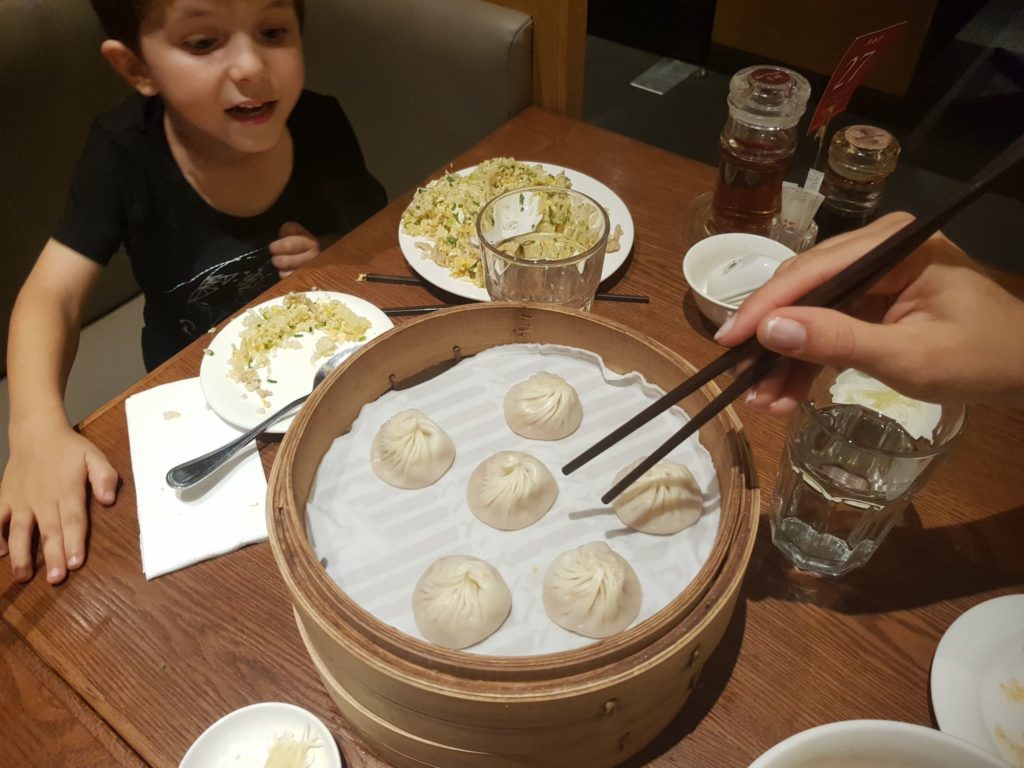 A peine le temps de s’installer et nous partons manger dans un centre commercial immense (7 étages) : un resto chinois (les chinois sont très implantés ici) où nous avons appris à manger des raviolis vapeur avec de la citronnelle…beaucoup de citronnelle !! Délicieux !