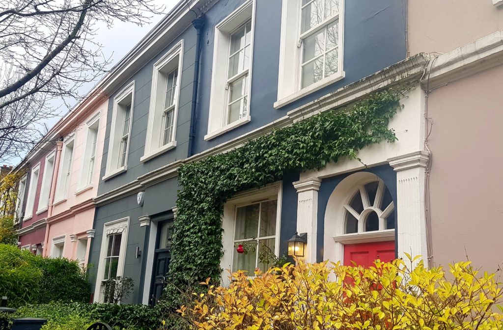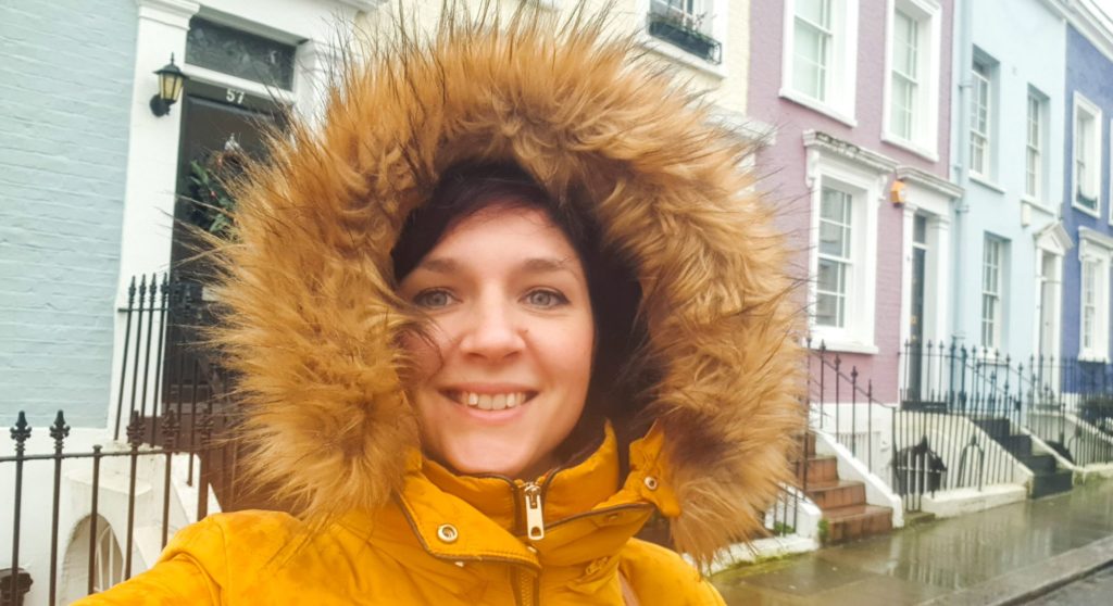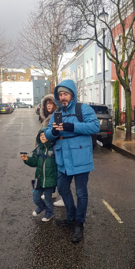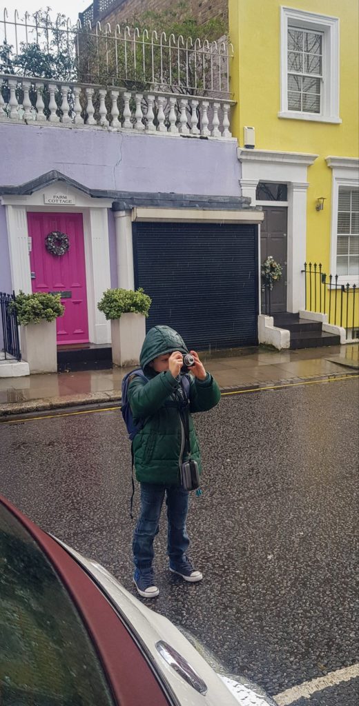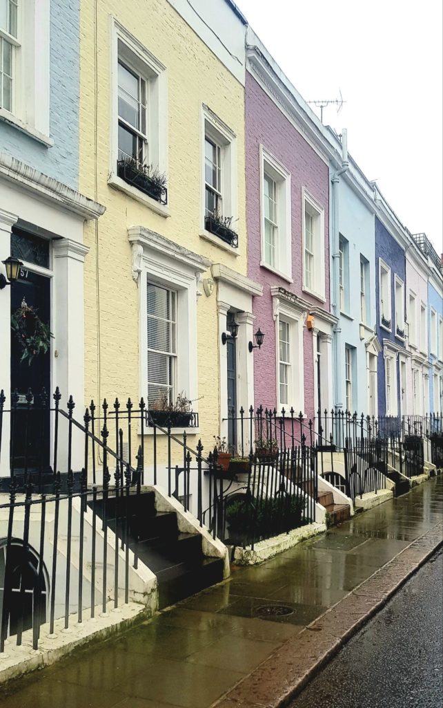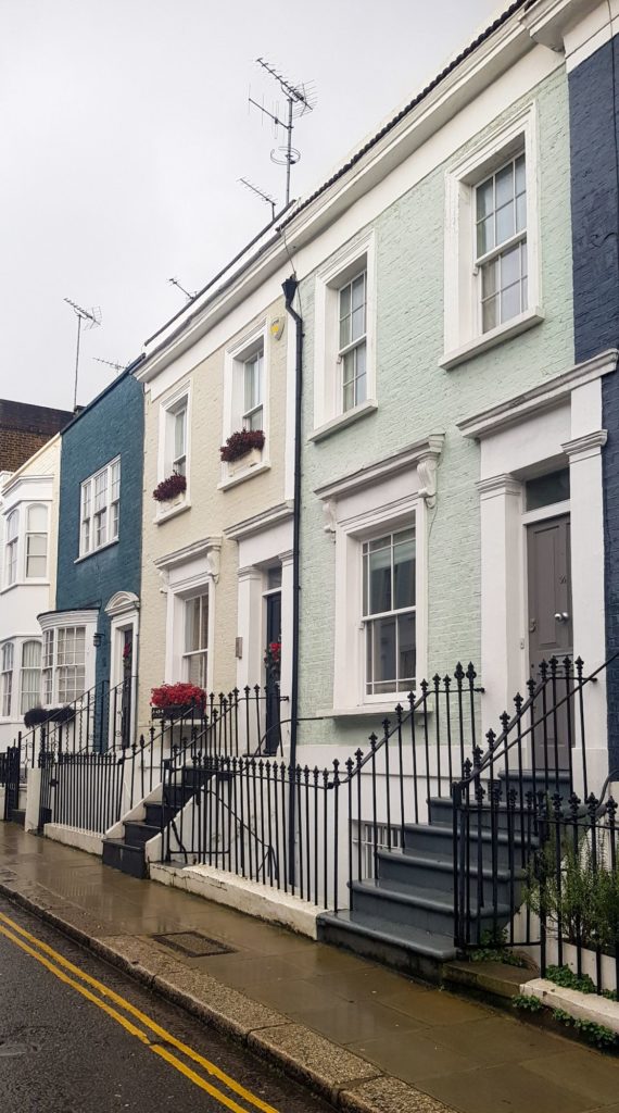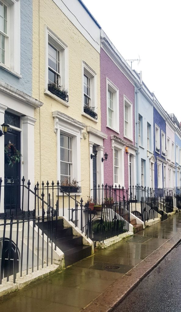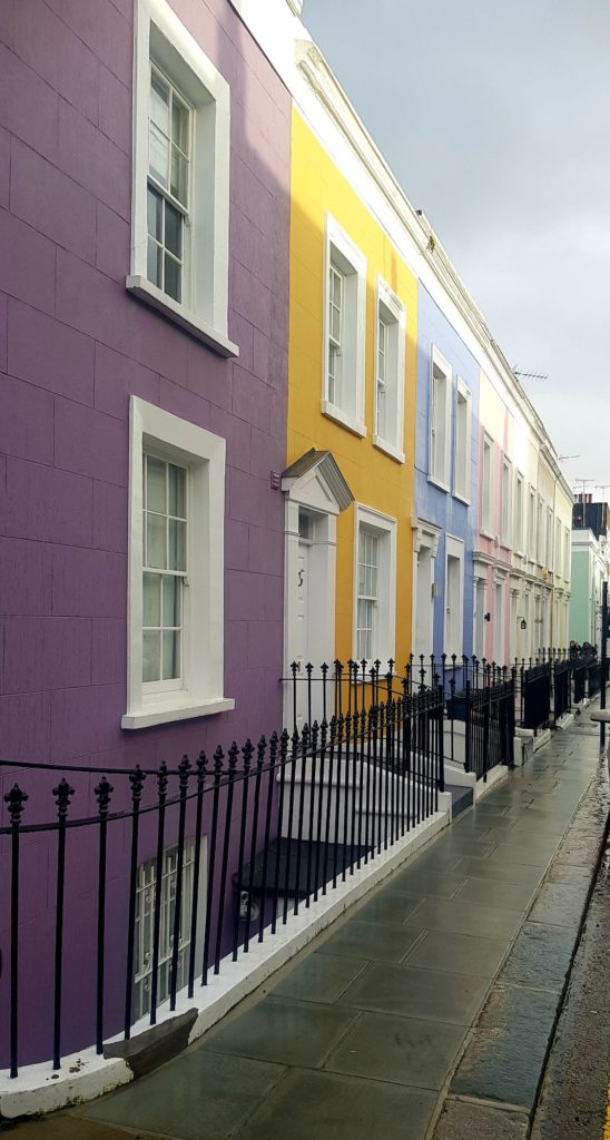 A Nothing Hill, nous partons à pied à la découverte des maisonnettes colorées, sous la pluie et le soleil à la fois !!
