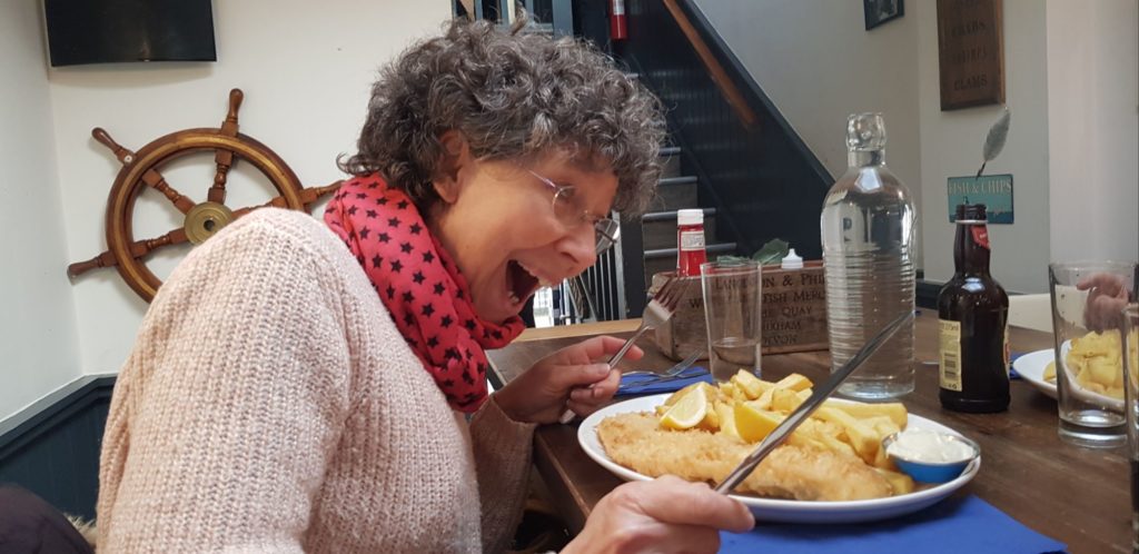 Nous déjeunons dans un Fish N’ Chips adorable. Il ne paye pas de mine, mais le poisson et les frites y sont délicieux !