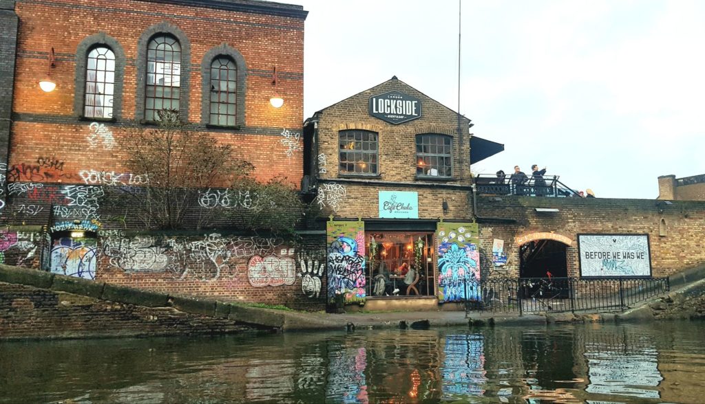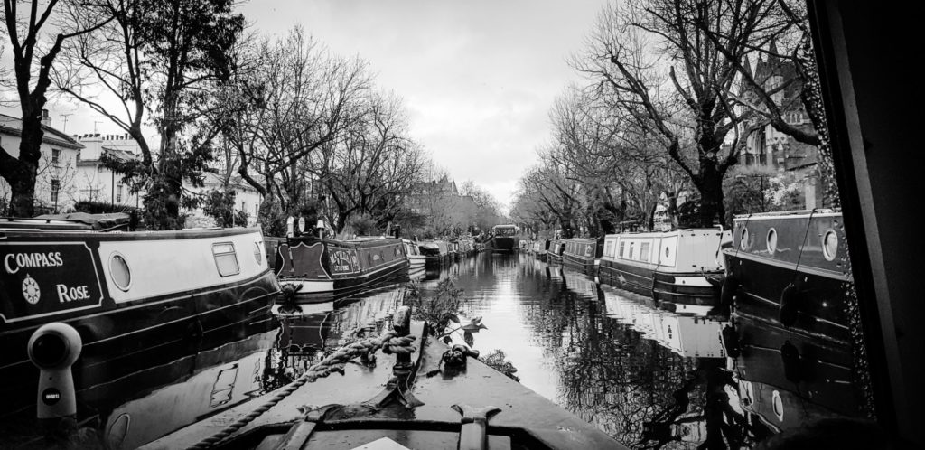 Nous trouvons une péniche qui fait le trajet de Little Venice à Camden Town en empruntant Regent Canal. La promenade sur le canal est très sympa et nous permet de découvrir les nombreuses péniches habitées, leurs jardins secrets aménagés sur les rives, les villas de luxe qui bordent le canal, le zoo de Londres que nous traversons et enfin, Camden Town, cette friche industrielle réhabilitée avec énormément de goût.