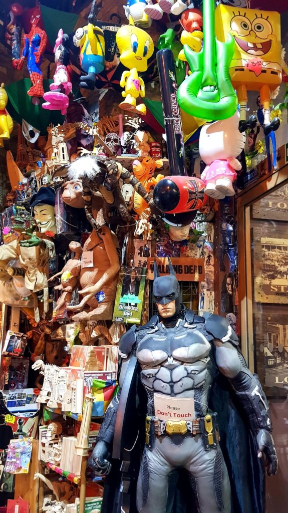 Nous nous perdons dans ce dédale de fripes et de boutiques londoniennes parfois grunge, parfois vintage. Eric découvre une enseigne qui fabrique des costumes pour hommes magnifiques, moi je déniche une échoppe qui vend du Banned Rétro et du Hell Bunny, mes 2 marques anglaises préférées en terme de tenue vintage. Les prix sont plus intéressants qu’en France, j’hésite entre une robe et un gilet. Le vendeur m’explique qu’il peut me faire un prix…ohhhh, on peut donc négocier !!! Chic, j’adore ça ! Je repars donc avec les 2 pour quasiment le prix d’1 !…