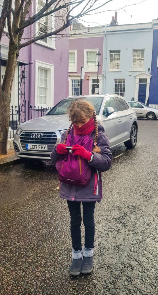 Ce matin, direction Nothing Hill en black cab. Oui, c’est le moyen de transport le plus adapté à notre famille : à 5 ou 6 places, ils sont spacieux, moins chers que le métro ou les Uber et les chauffeurs sont adorables !! A priori, leur formation est ultra rigoureuse et ils sont censés connaître sur le bout des ongles les 25 000 rues du centre…ouch !