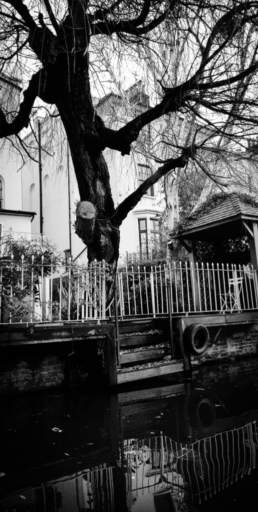 Nous prenons un nouveau Black Cab qui nous dépose à Little Venice. L’endroit est très surprenant : quelques canaux, des péniches, des canards à tête blanche avec les pattes en « saucisses » ou « lézard » selon les interprétations de chacun, des maisons victoriennes, des jardins adorables, bref, c’est une facette de Londres que nous ne soupçonnions pas.
