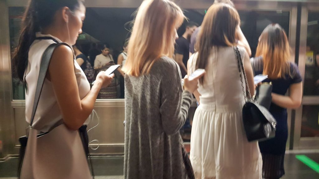 Nous l’avons pris aux heures de pointe et là, surprise : il y a des employés qui font la circulation pour aider le flux de passagers et les gens font le queue de manière organisée pour monter dans les wagons bondés !! Ouahhhh