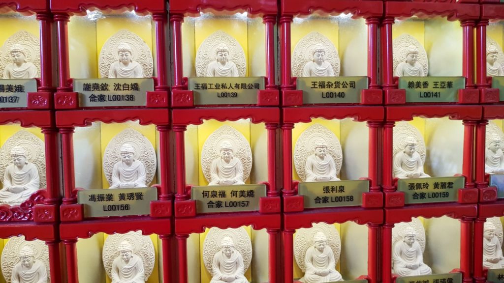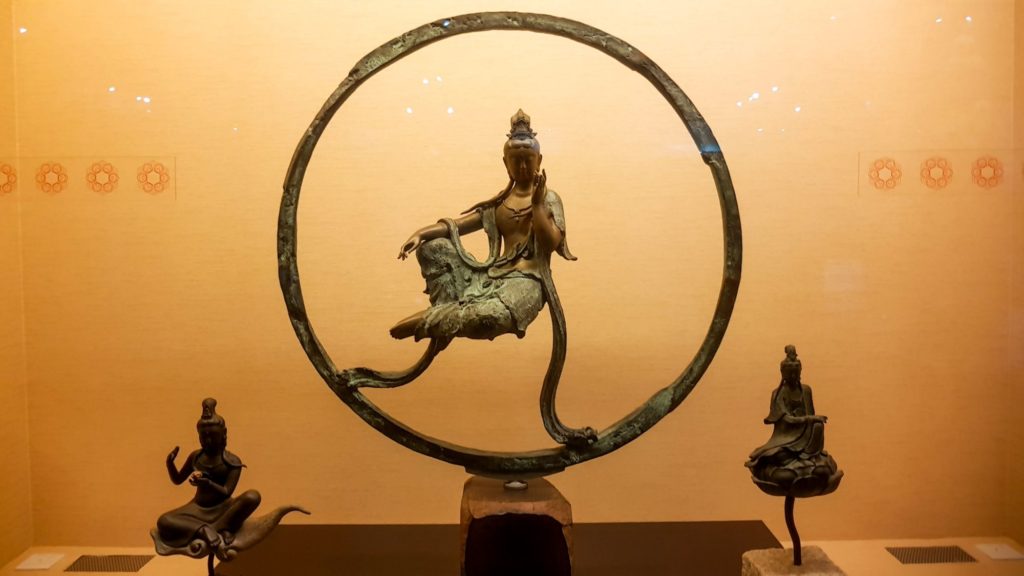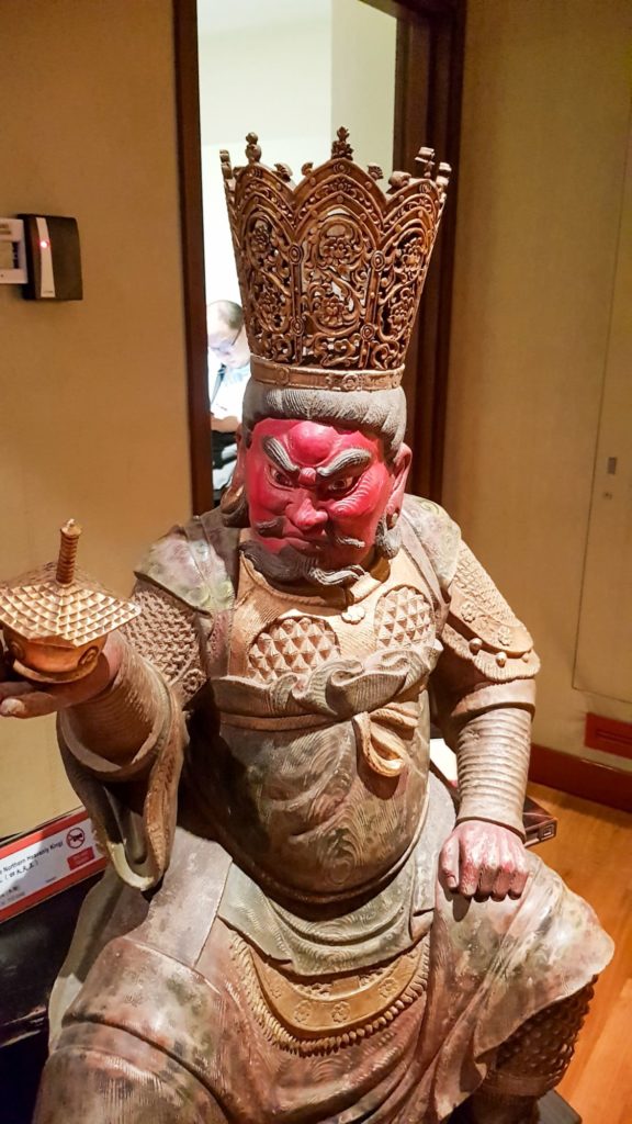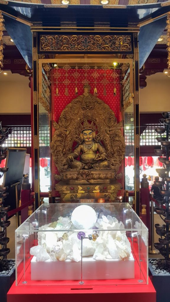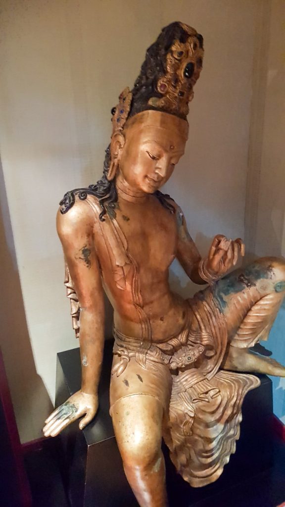 Nous montons directement aux étages puisque nous avions déjà vu le RDC. Nous découvrons d’abord un très beau musée avec de nombreuses statues, mais le plus surprenant, c’est la chambre des reliques : une petite salle remplie de reliquaires contenant des reliques de Bouddha (dont des particules du cerveau !!!).
